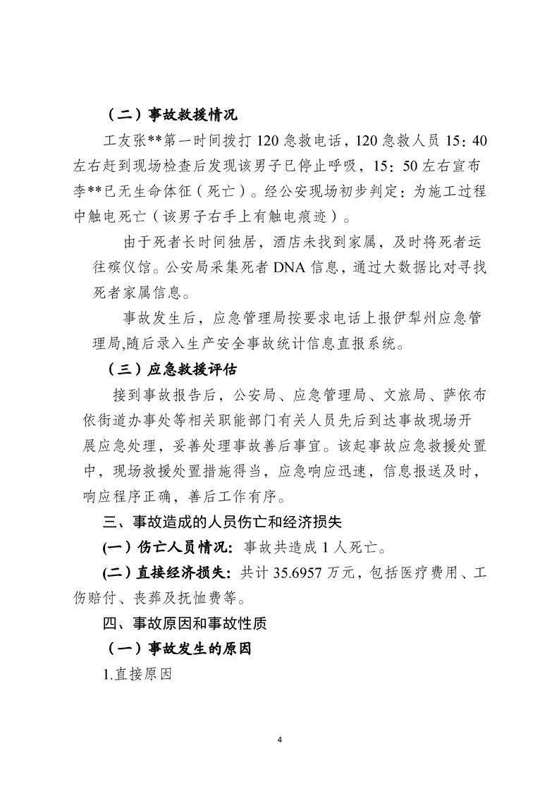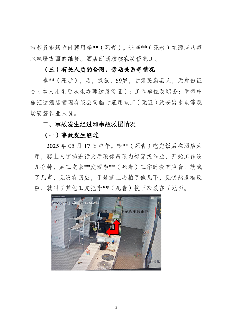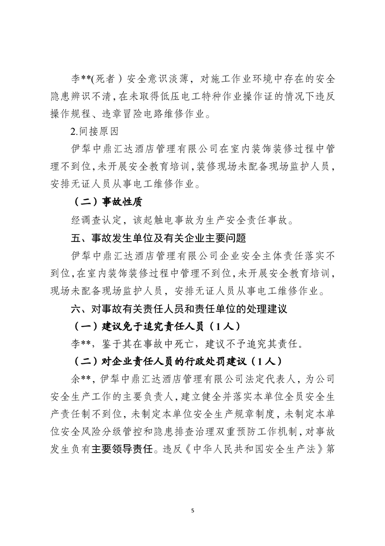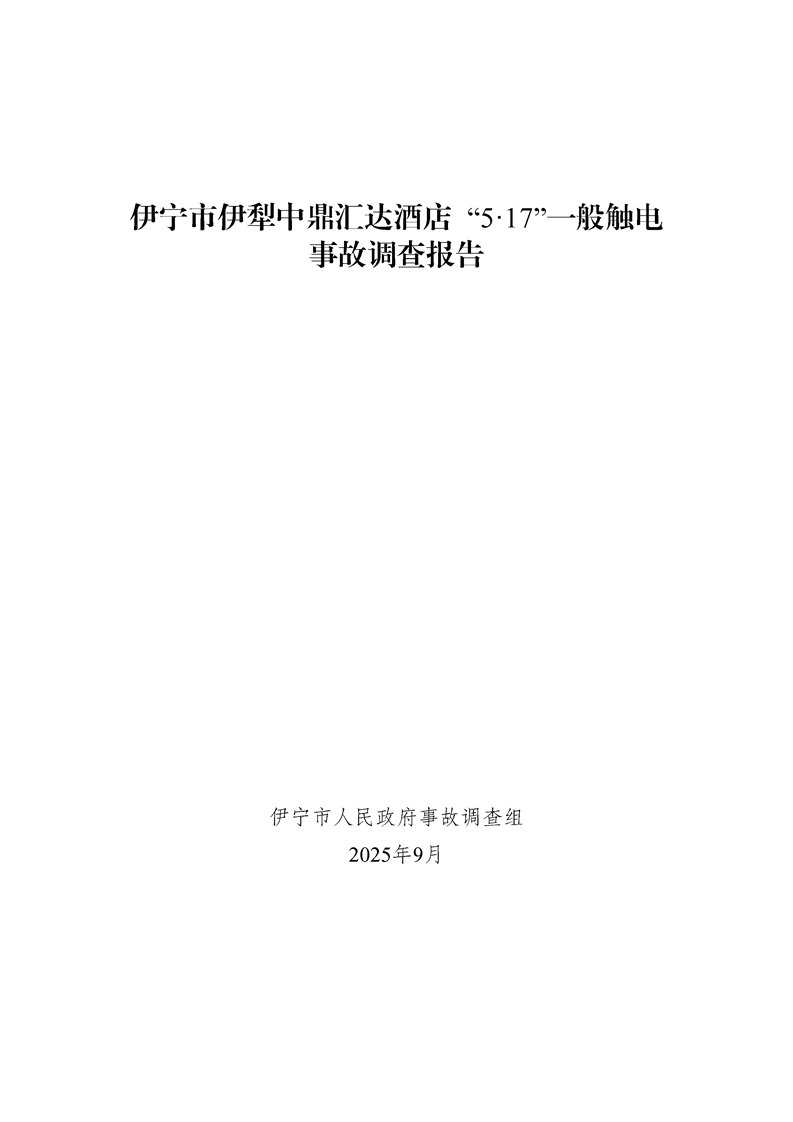 伊宁市伊犁中鼎汇达酒店 “5·17”一般触电事故调查报告