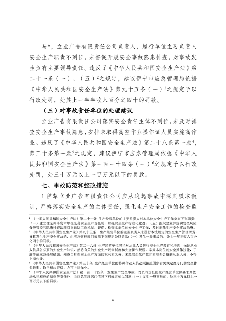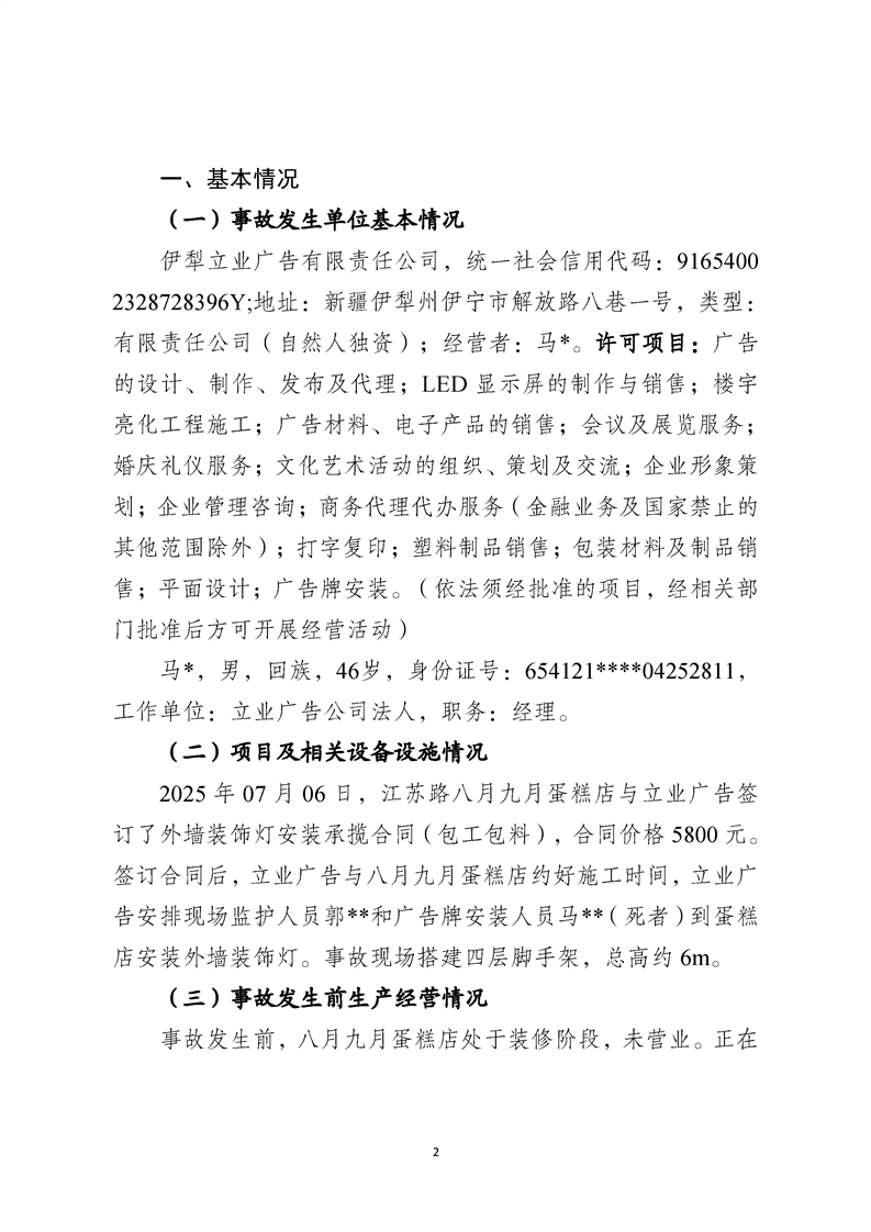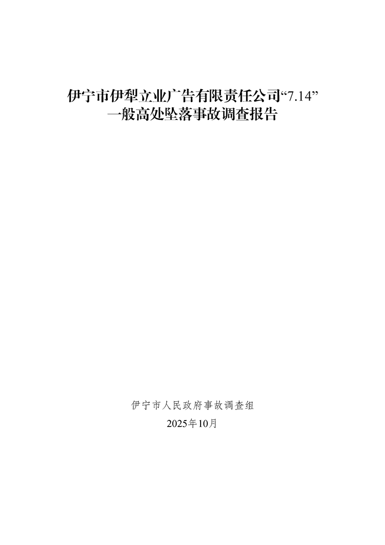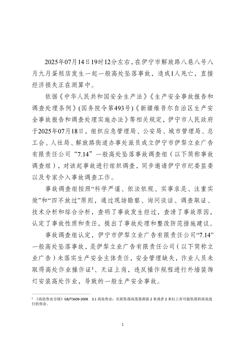 伊宁市伊犁立业广告有限责任公司“7.14”一般高处坠落事故调查报告