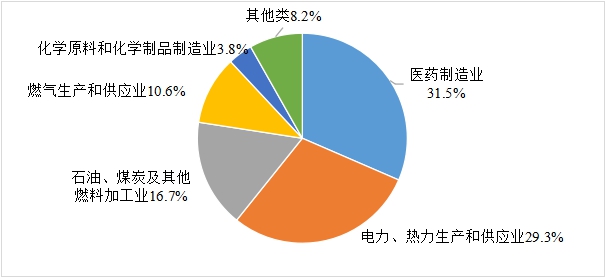 全年规模以上工业中,医药制造业增加值增长2.2%;电力、热力生产和供应业下降5%;石油、煤炭及其他燃料加工业增长24.1%;燃气生产和供应业增长20.6%;化学原料和化学制品制造业增长3.6%;非金属矿物制品业增长10.9%;水的生产和供应业增长34.2%;食品制造业下降7.6%;农副食品加工业增加值增长28.3%。