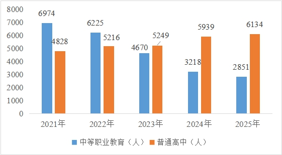 图11.2021-2025年中等职业教育、普通高中招生人数