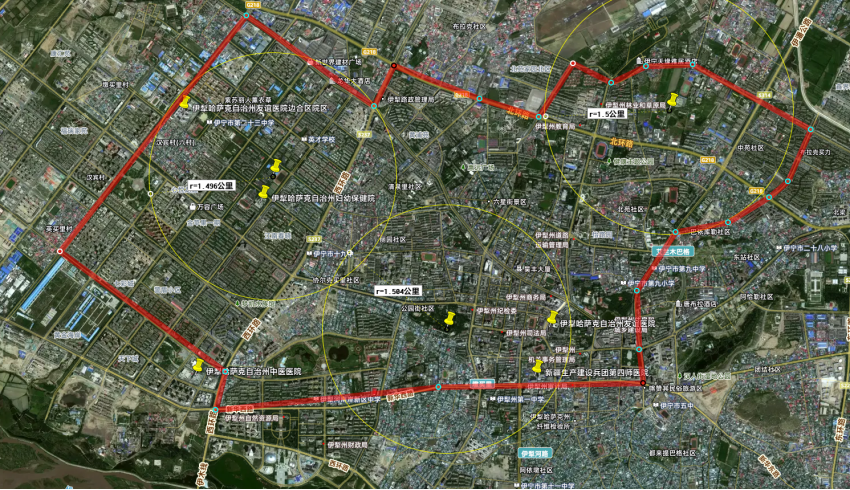 1、江北路—北环路—西环北路—解放西路—重庆路—广东路—西环路—新华西路—新华东路胜利北路—胜利街十四巷—巴依库路—文苑街—飞机场东街—飞机场街封闭区域;