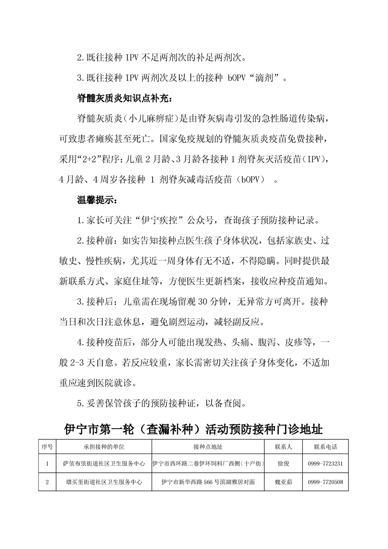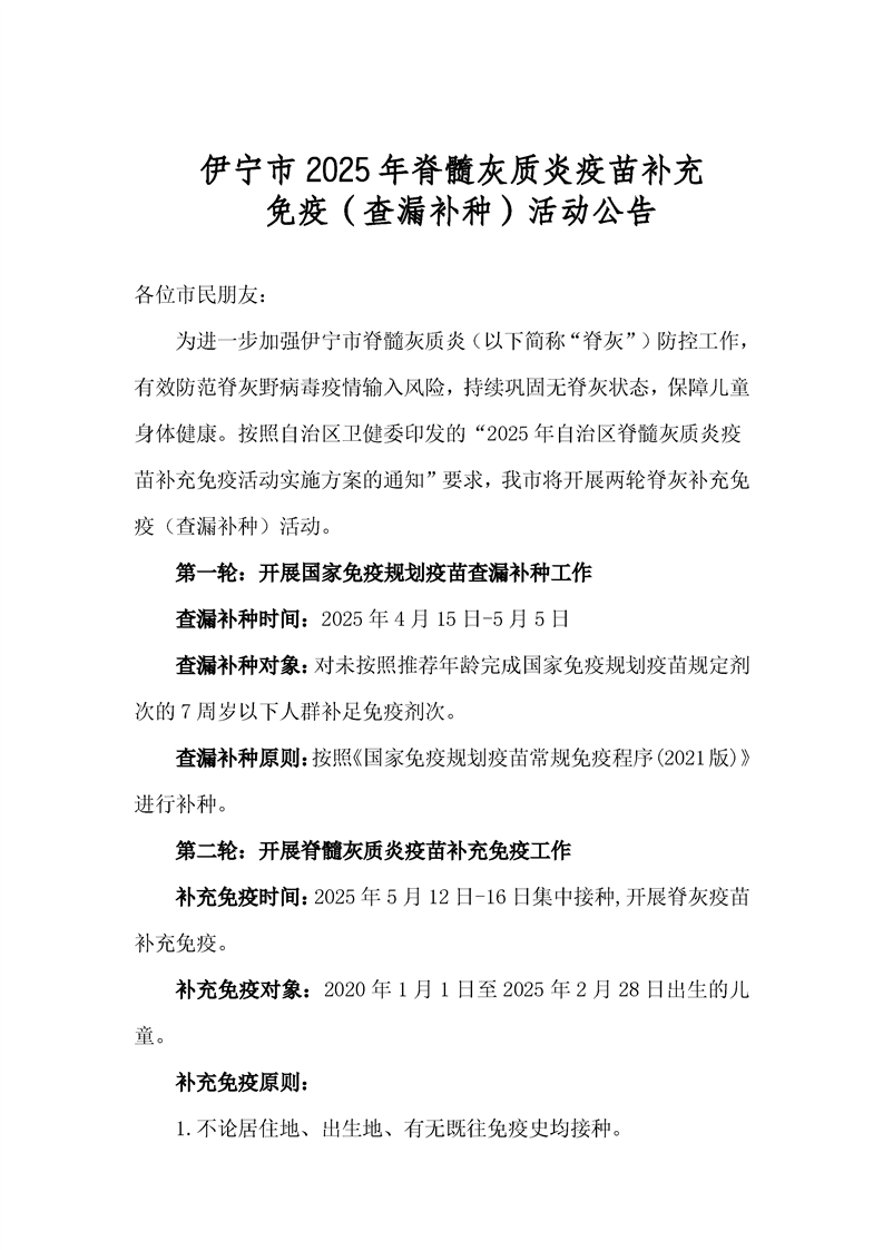 伊宁市2025年脊髓灰质炎疫苗补充免疫(查漏补种)活动公告