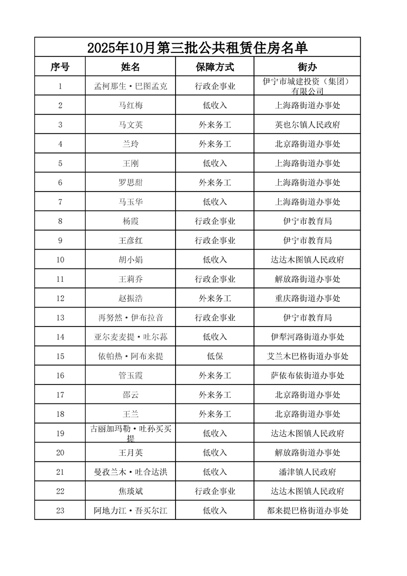2025年10月第三批公共租赁住房审核通过人员名单