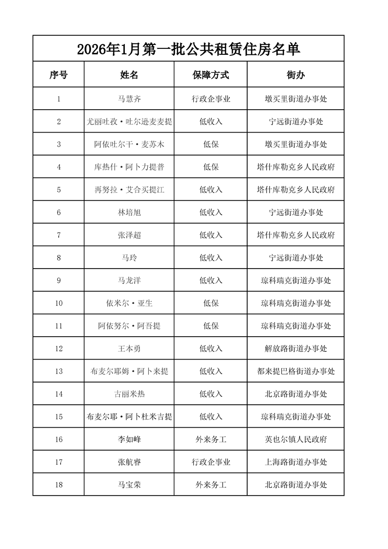 2026年1月第一批公共租赁住房审核通过人员名单