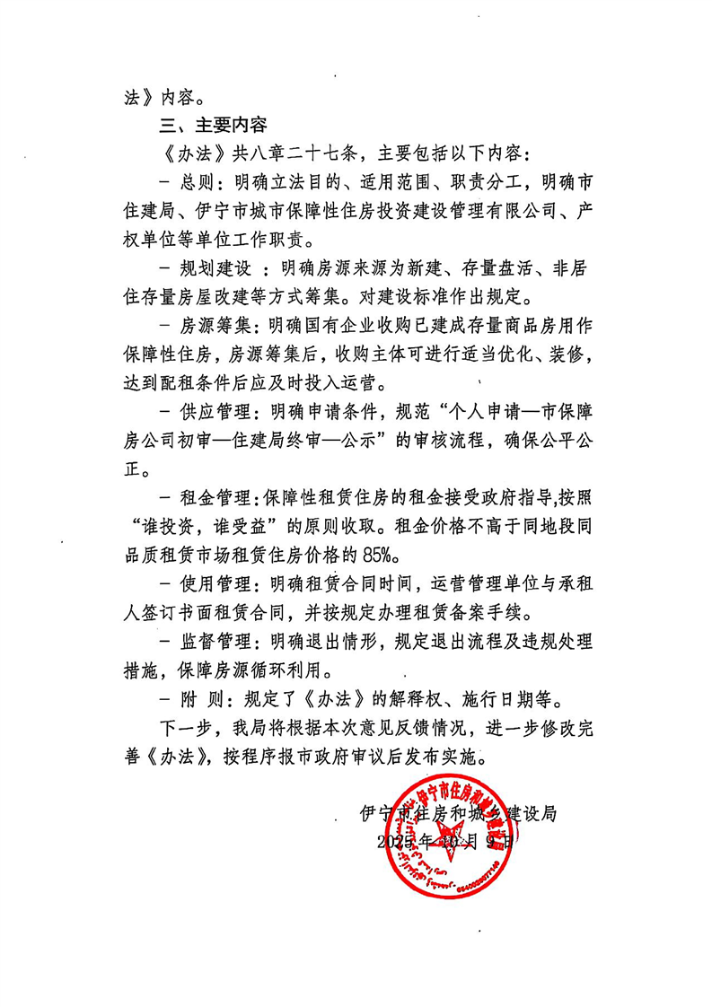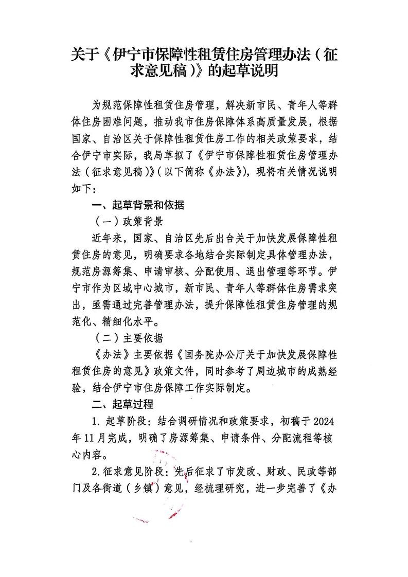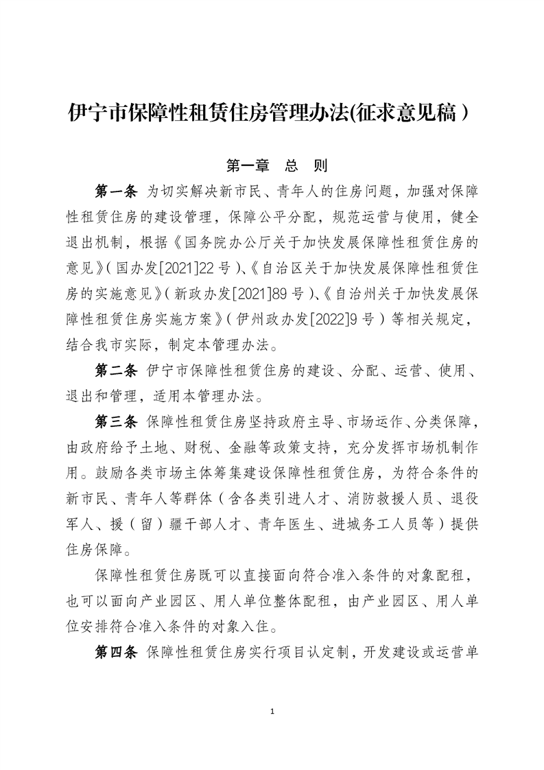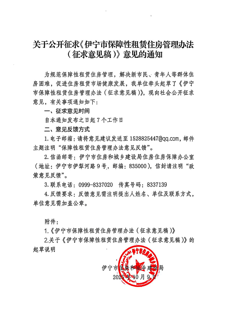 关于公开征求《伊宁市保障性租赁住房管理办法(征求意见稿)》意见的通知