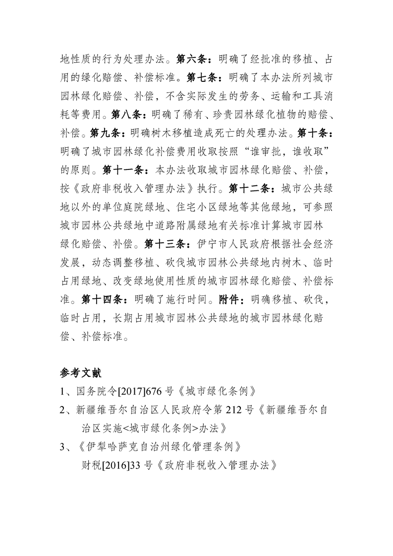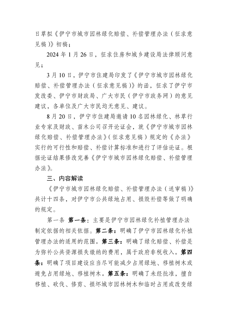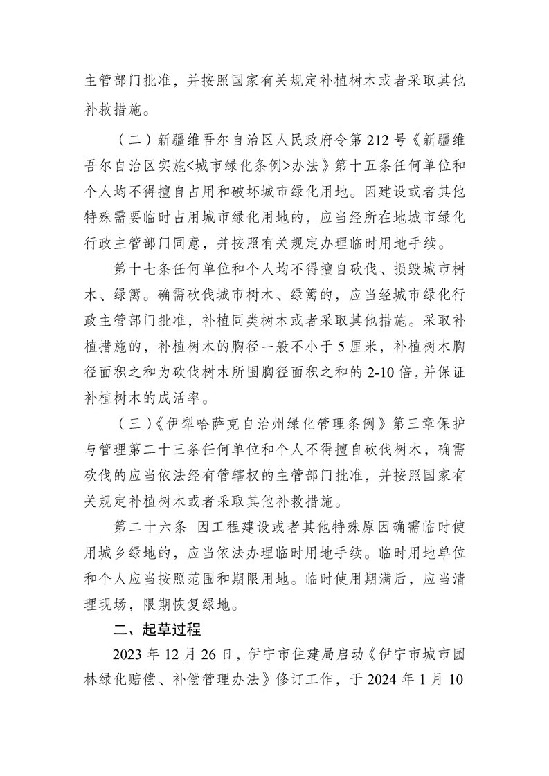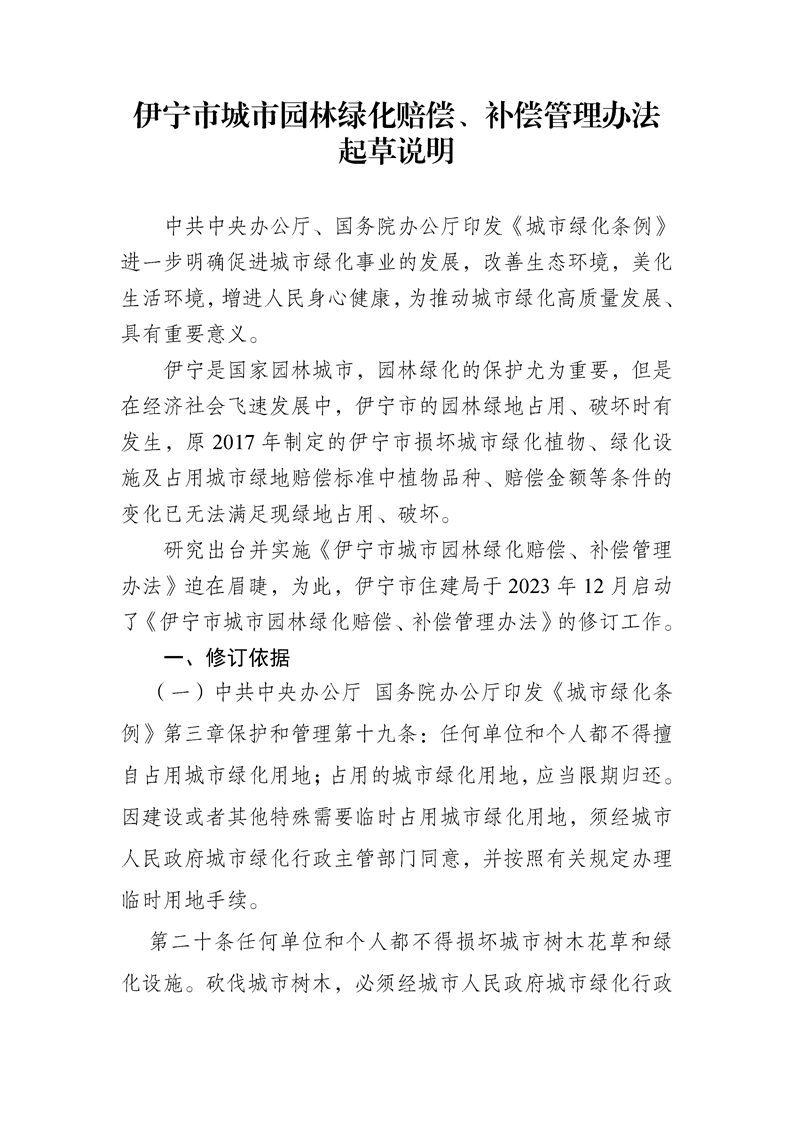 伊宁市城市园林绿化赔偿、补偿管理办法起草说明