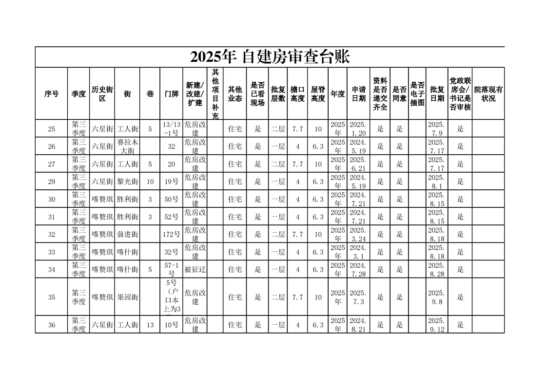 其他对外管理服务信息-2025年第三季度自建房审查台账
