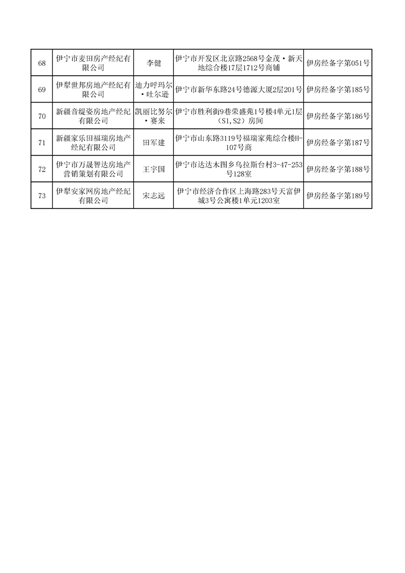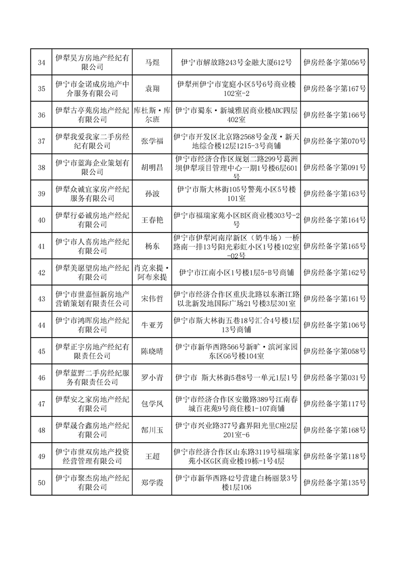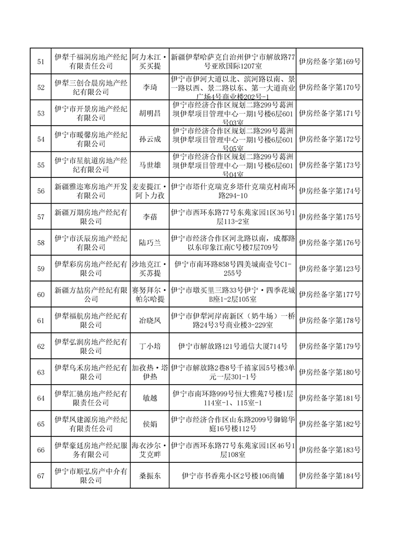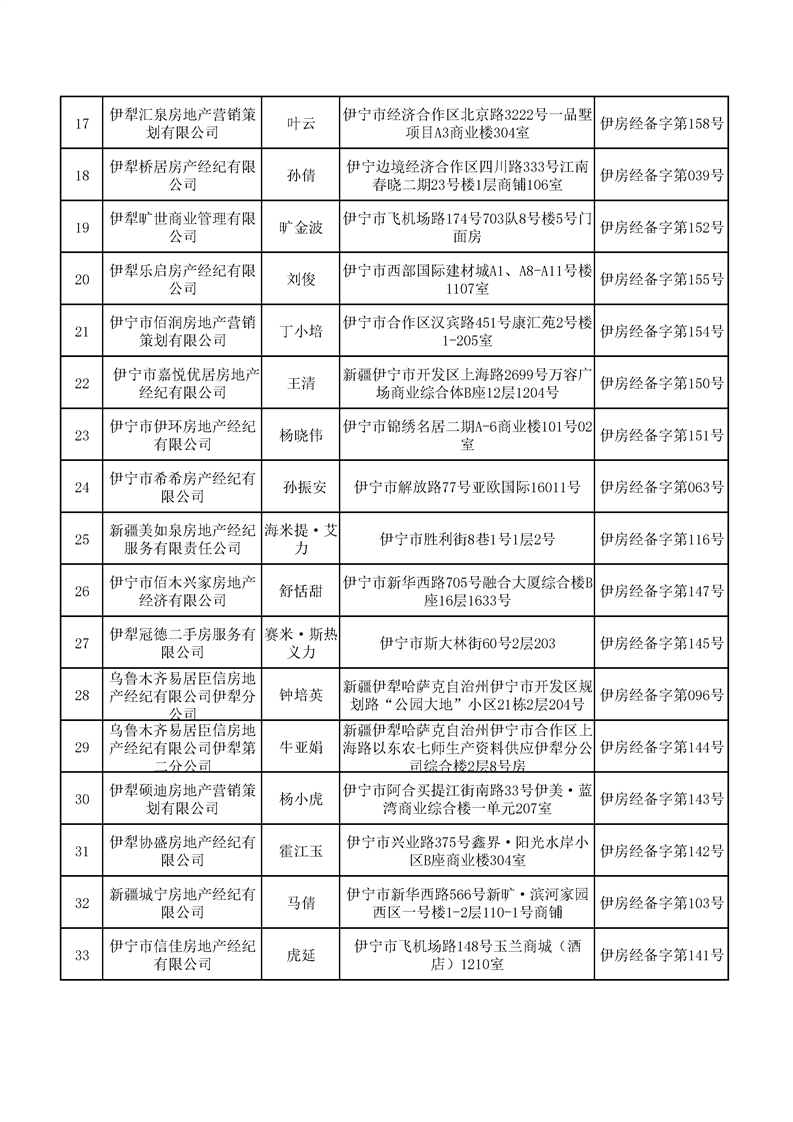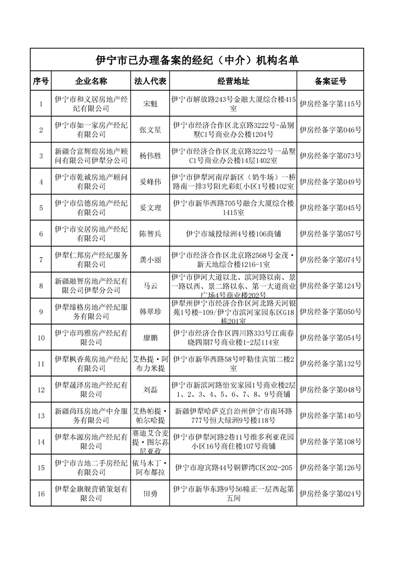 2025年第三季度伊宁市已办理备案的经纪(中介)机构名单