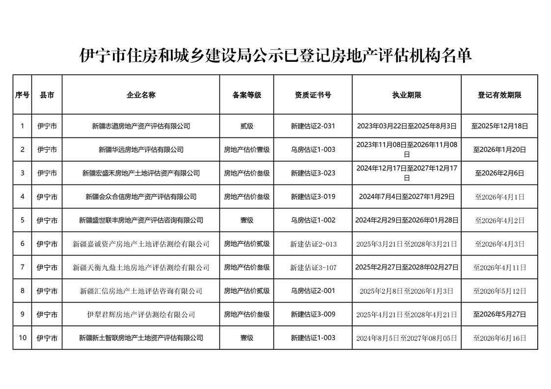 2025年第三季度已登记房地产评估机构名单