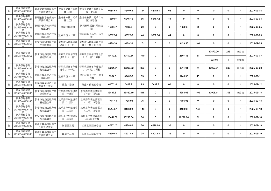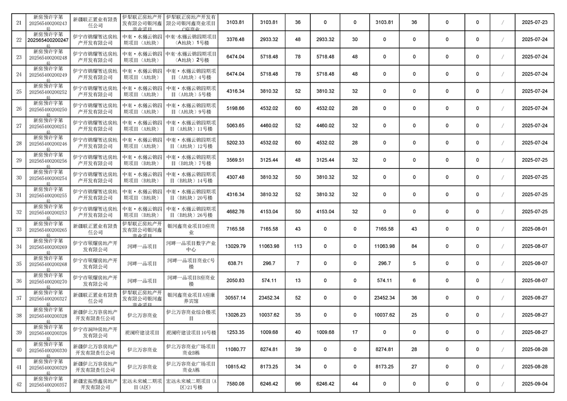 2025年第三季度预售许可台账