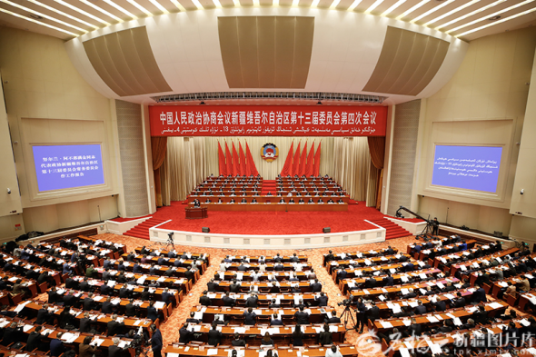1月26日,中国人民政治协商会议新疆维吾尔自治区第十三届委员会第四次会议在新疆人民会堂开幕。石榴云/新疆日报记者谢龙摄