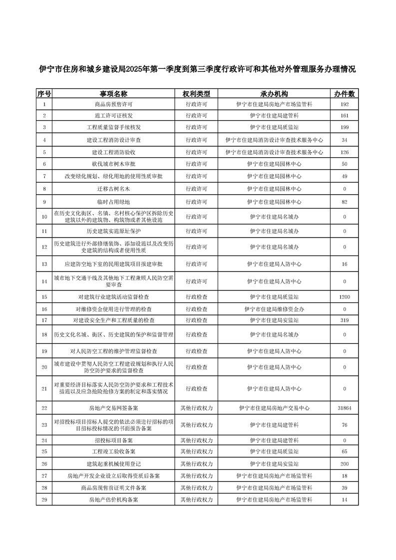 伊宁市住房和城乡建设局第一季度到第三季度行政许可和其他对外管理服务办理情况