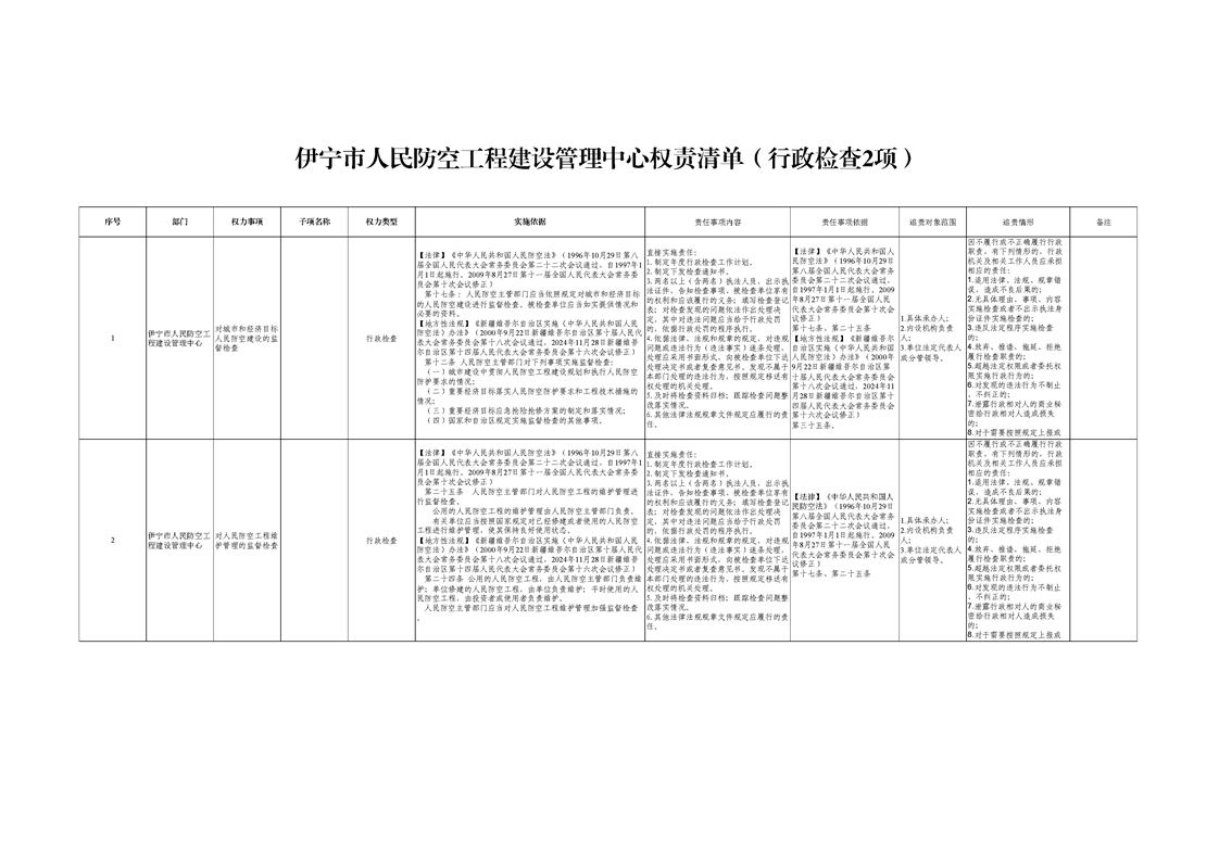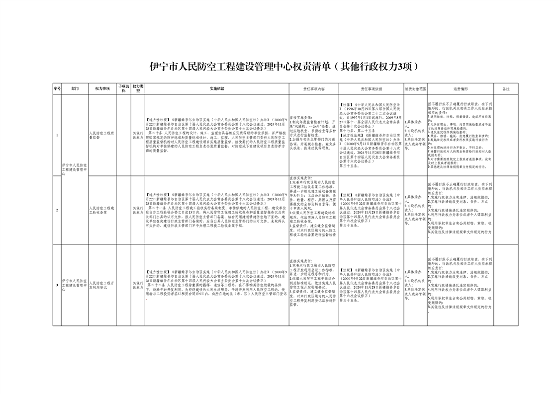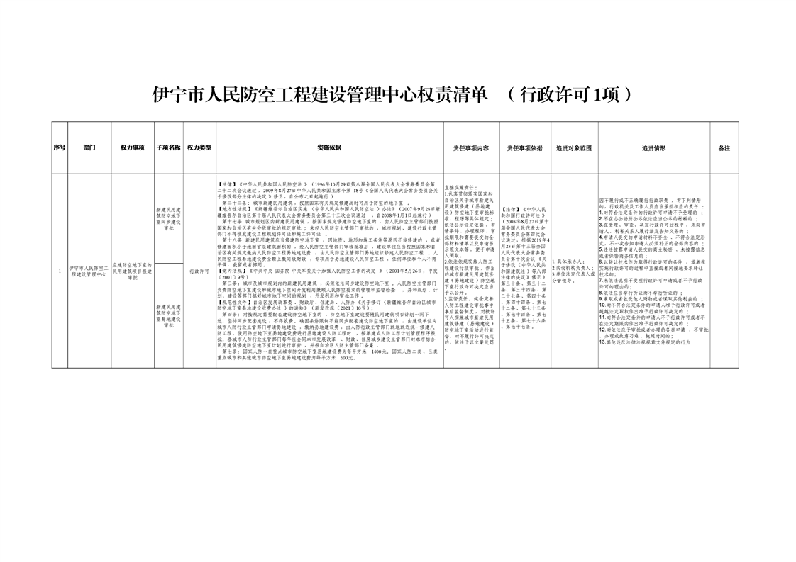 伊宁市人民防空工程建设管理中心权责清单