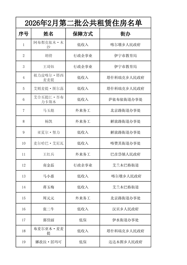2026年2月第二批公共租赁住房审核通过人员名单