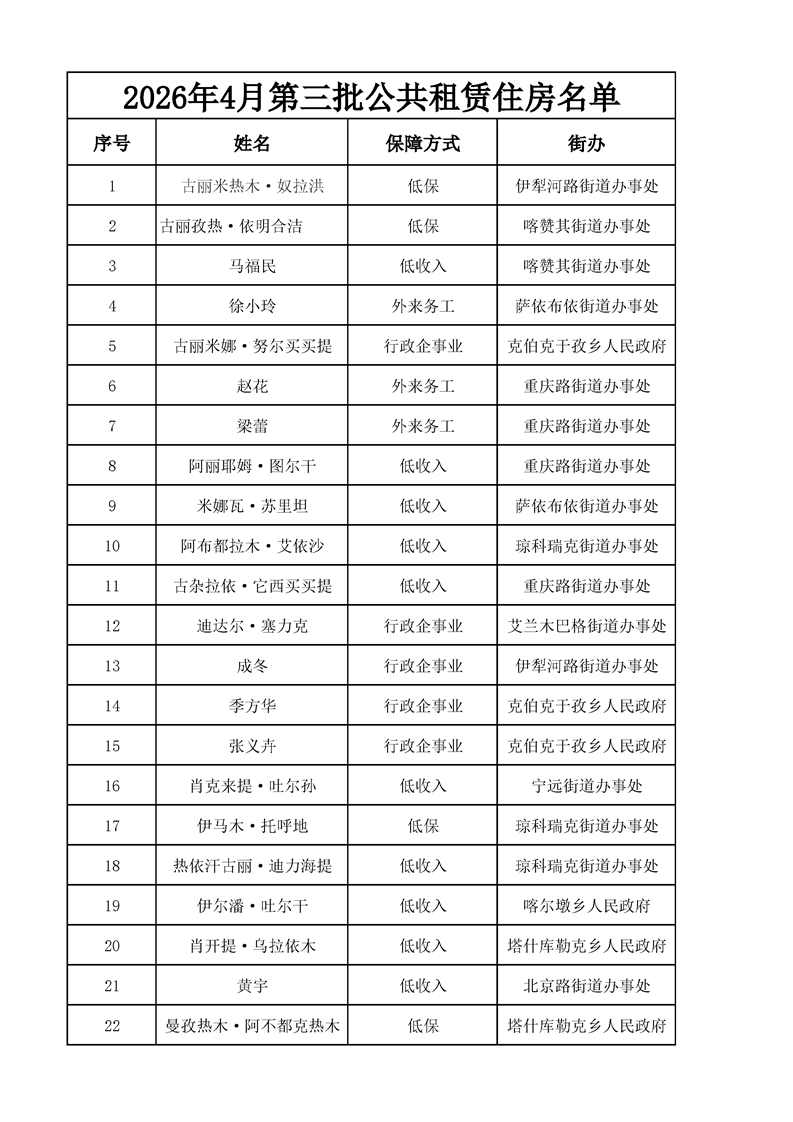 2026年4月第三批公共租赁住房审核通过人员名单
