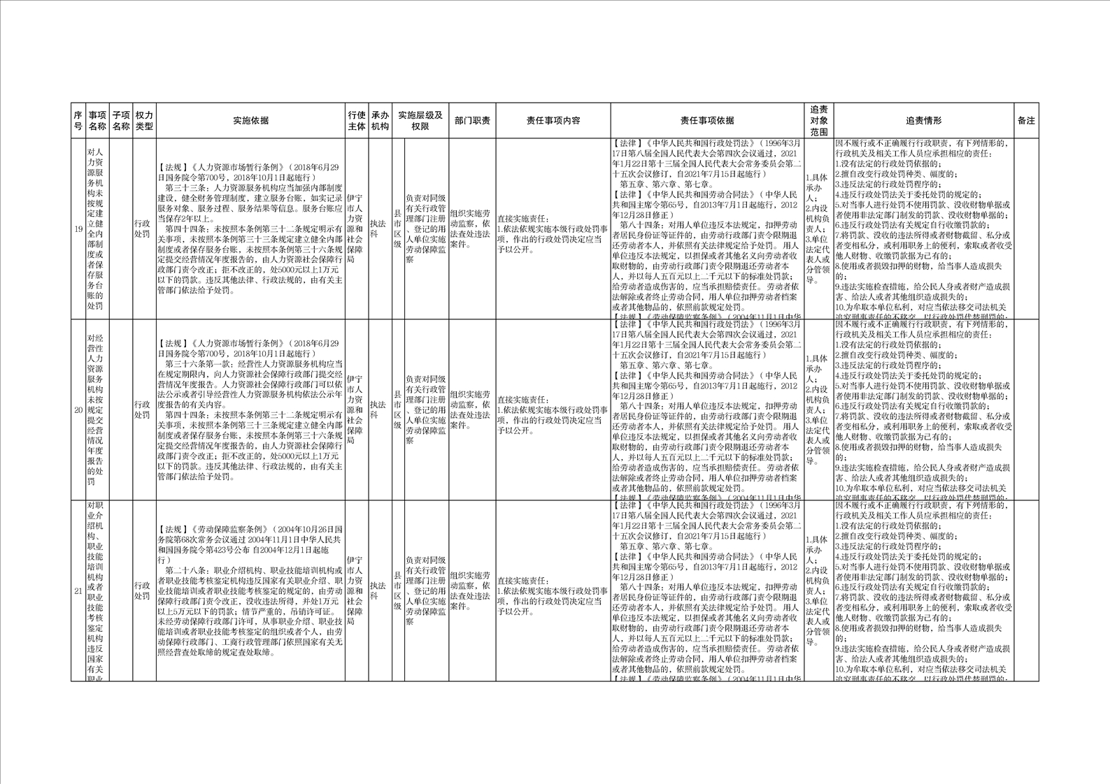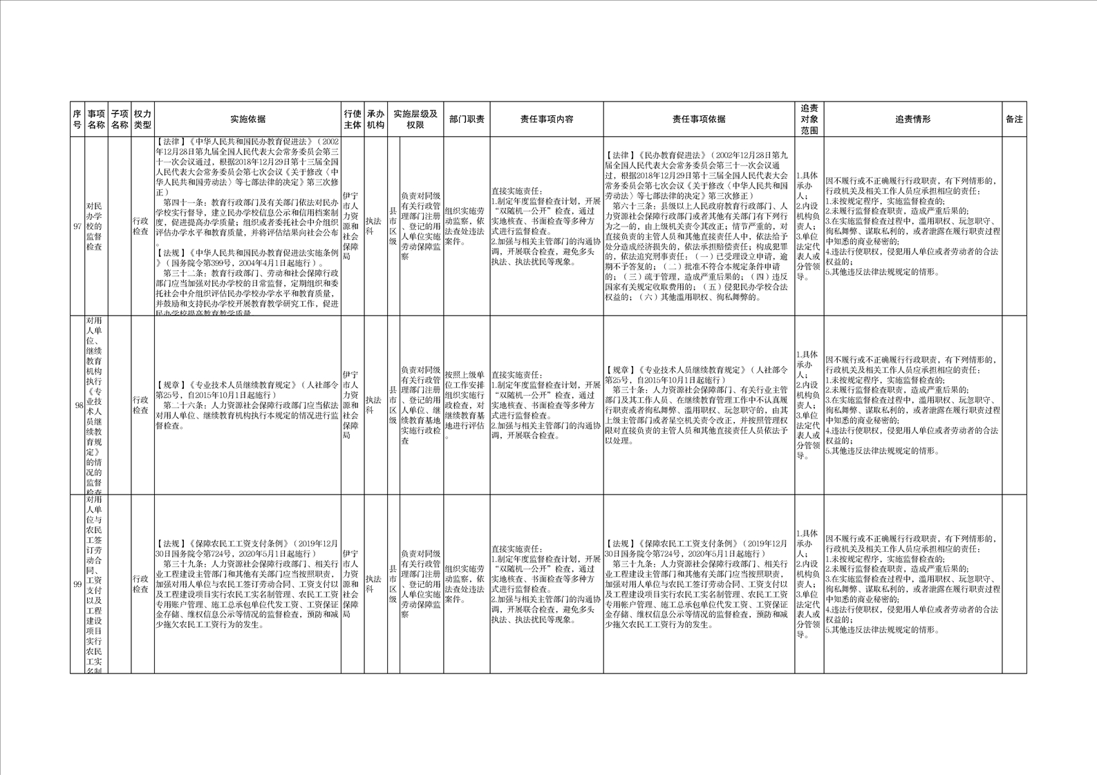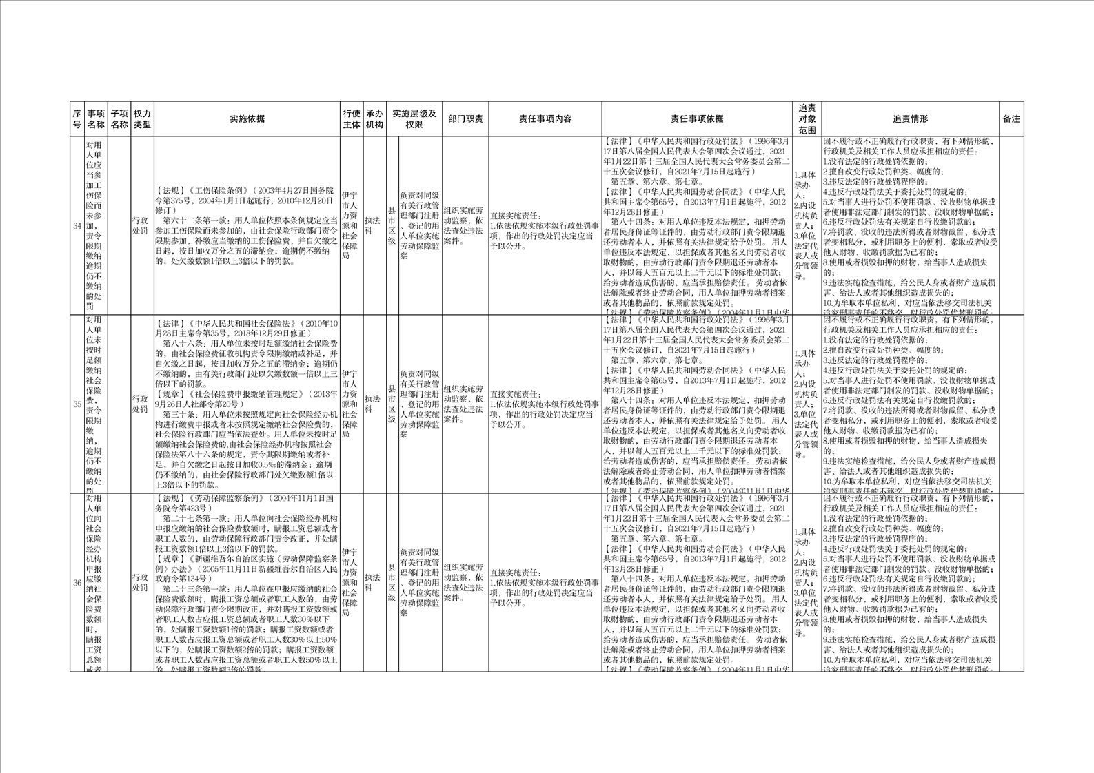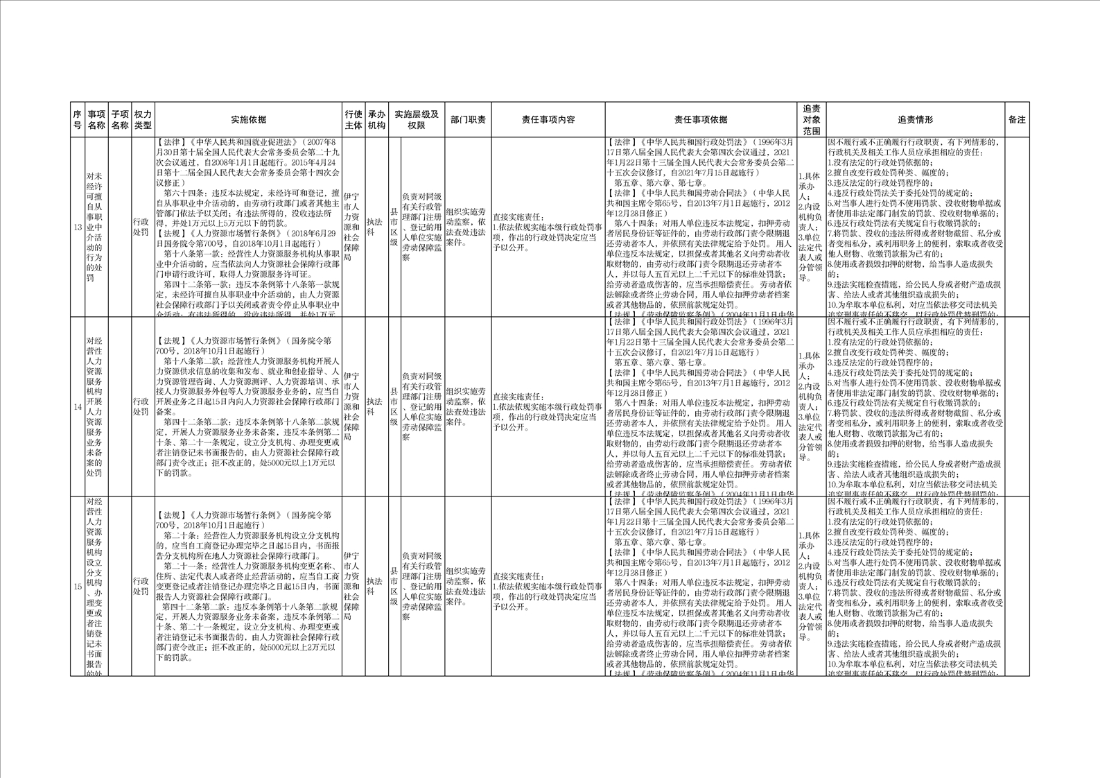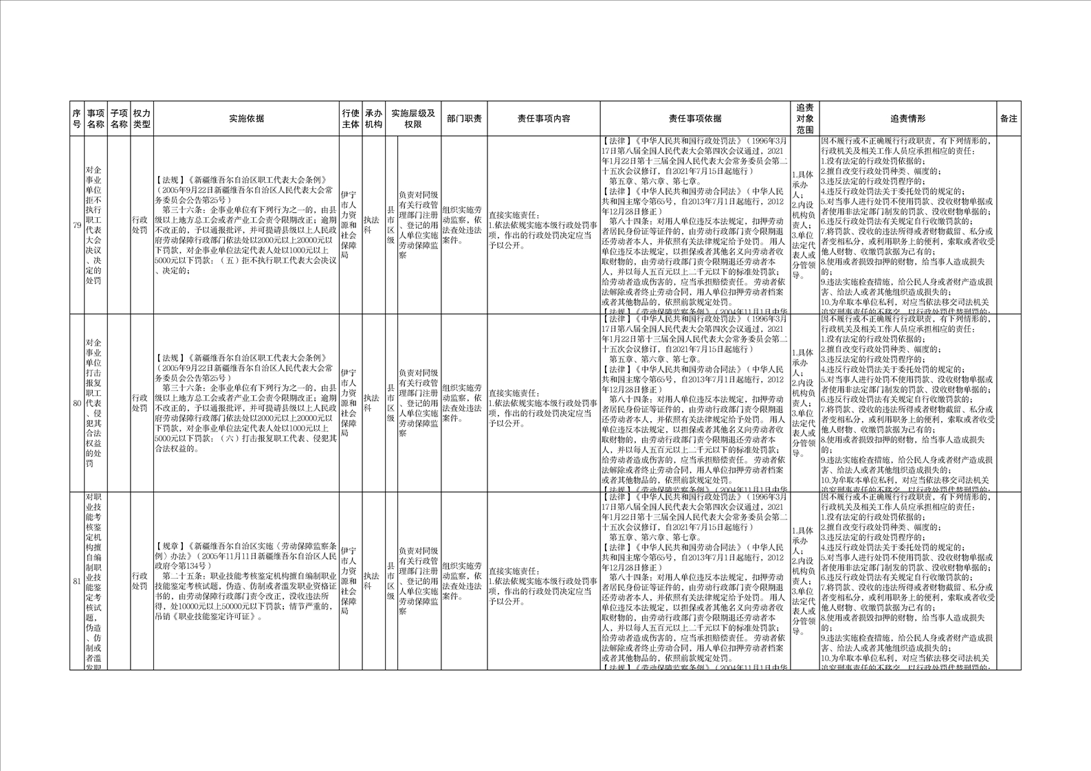 伊宁市人力资源和社会保障局权责清单