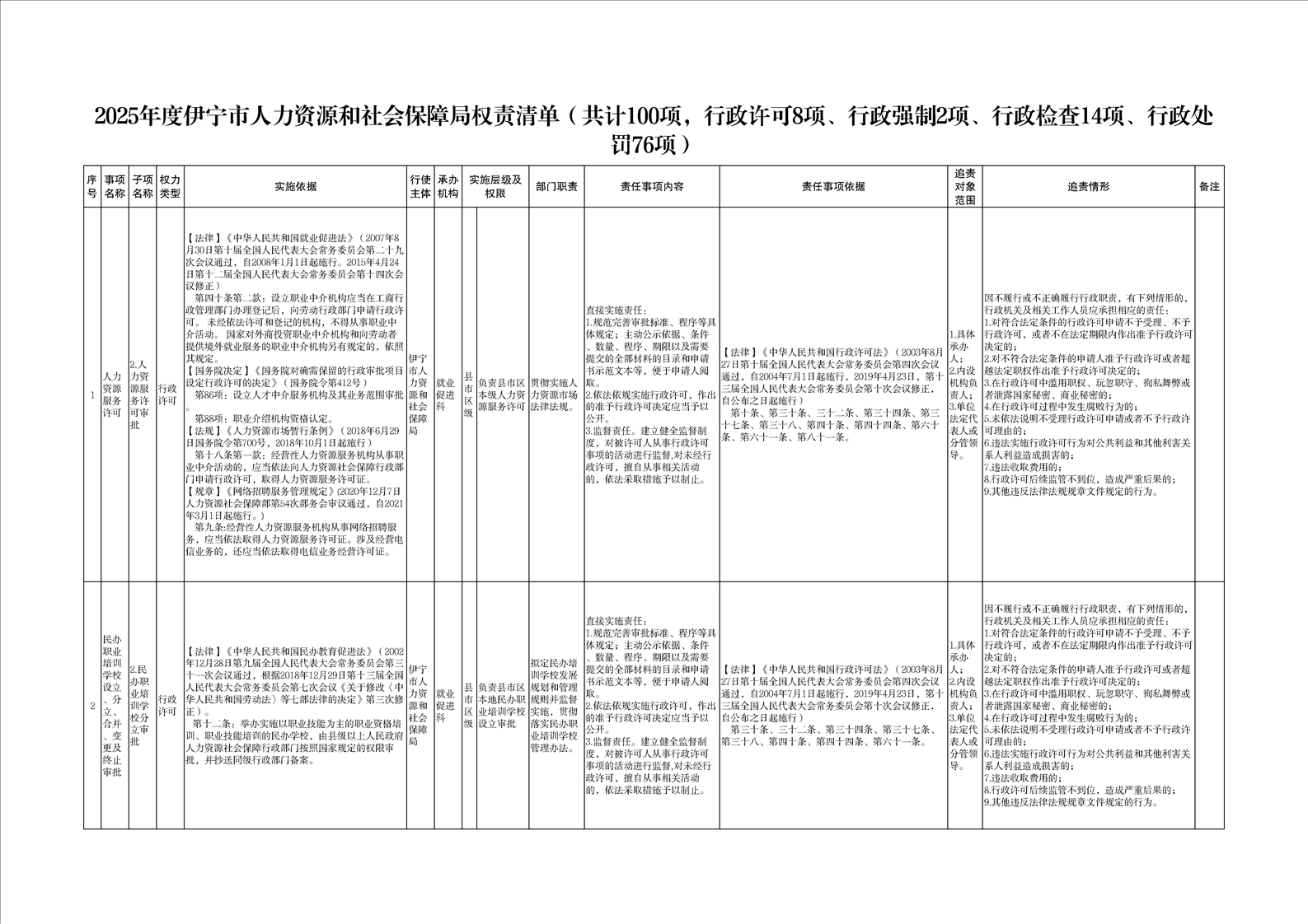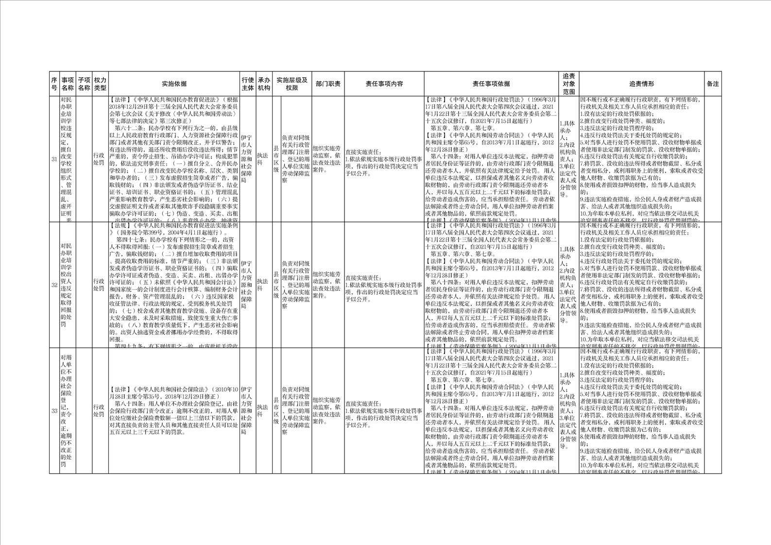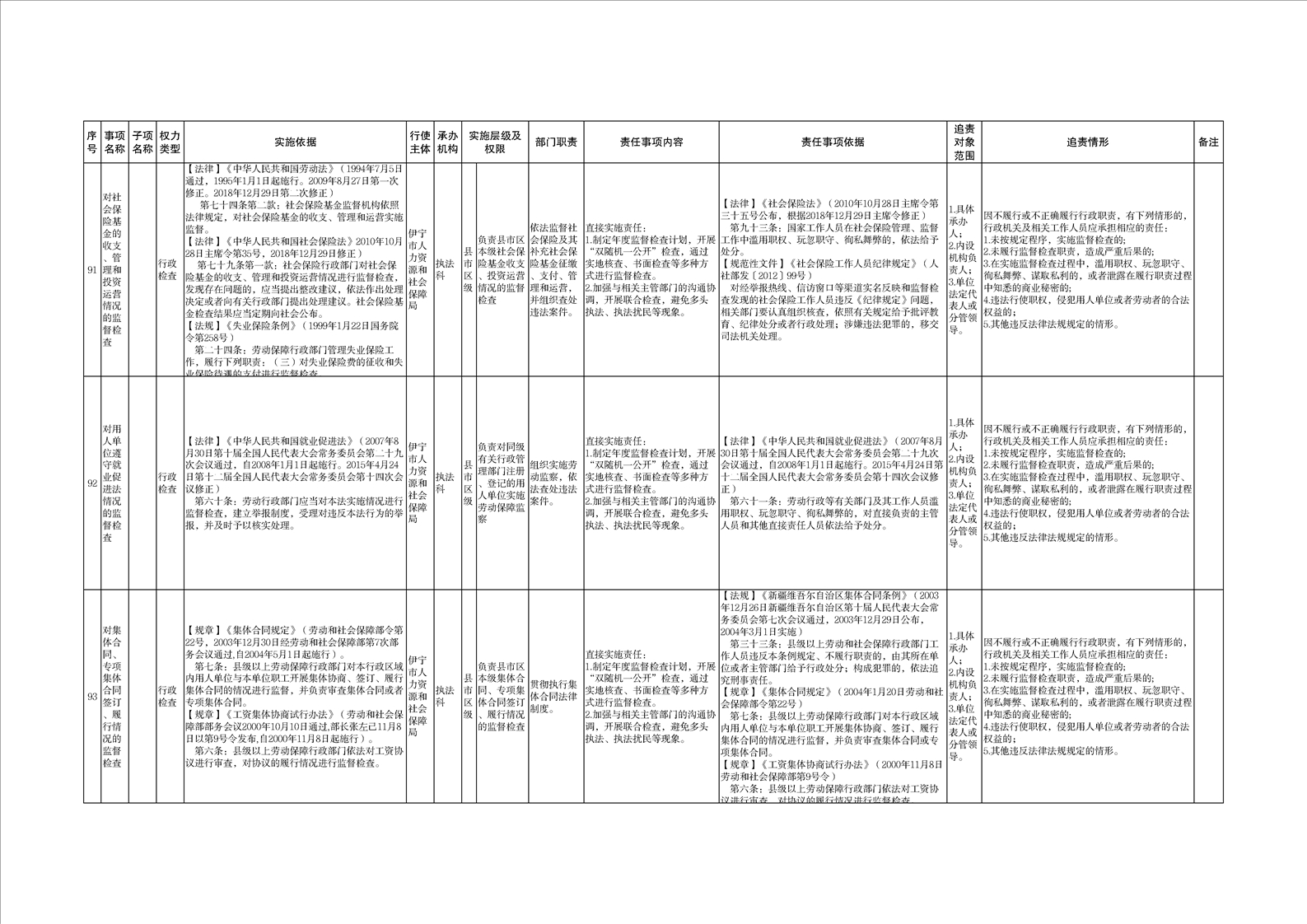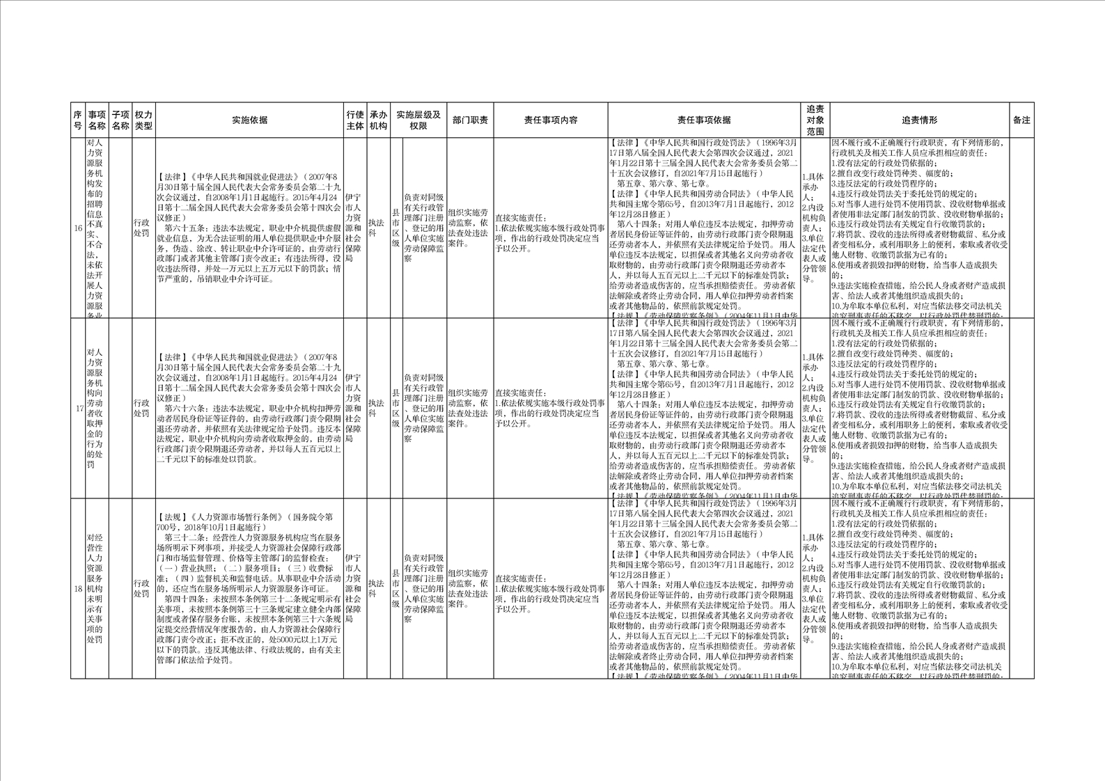 伊宁市人力资源和社会保障局权责清单