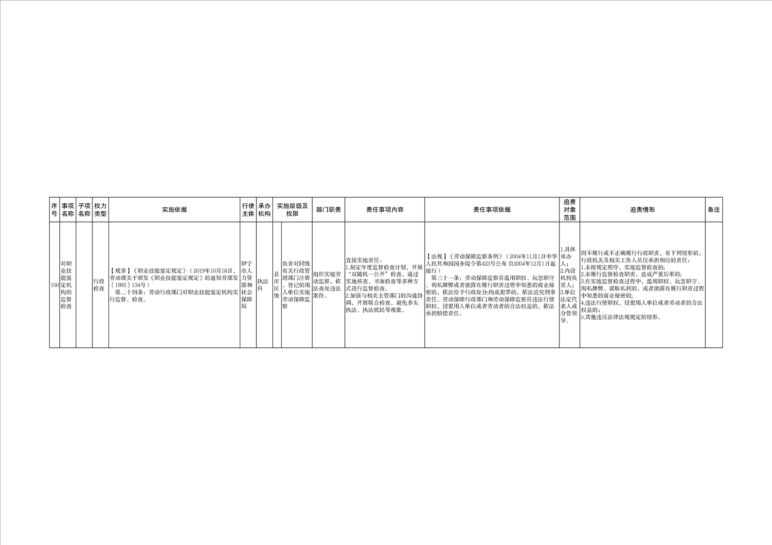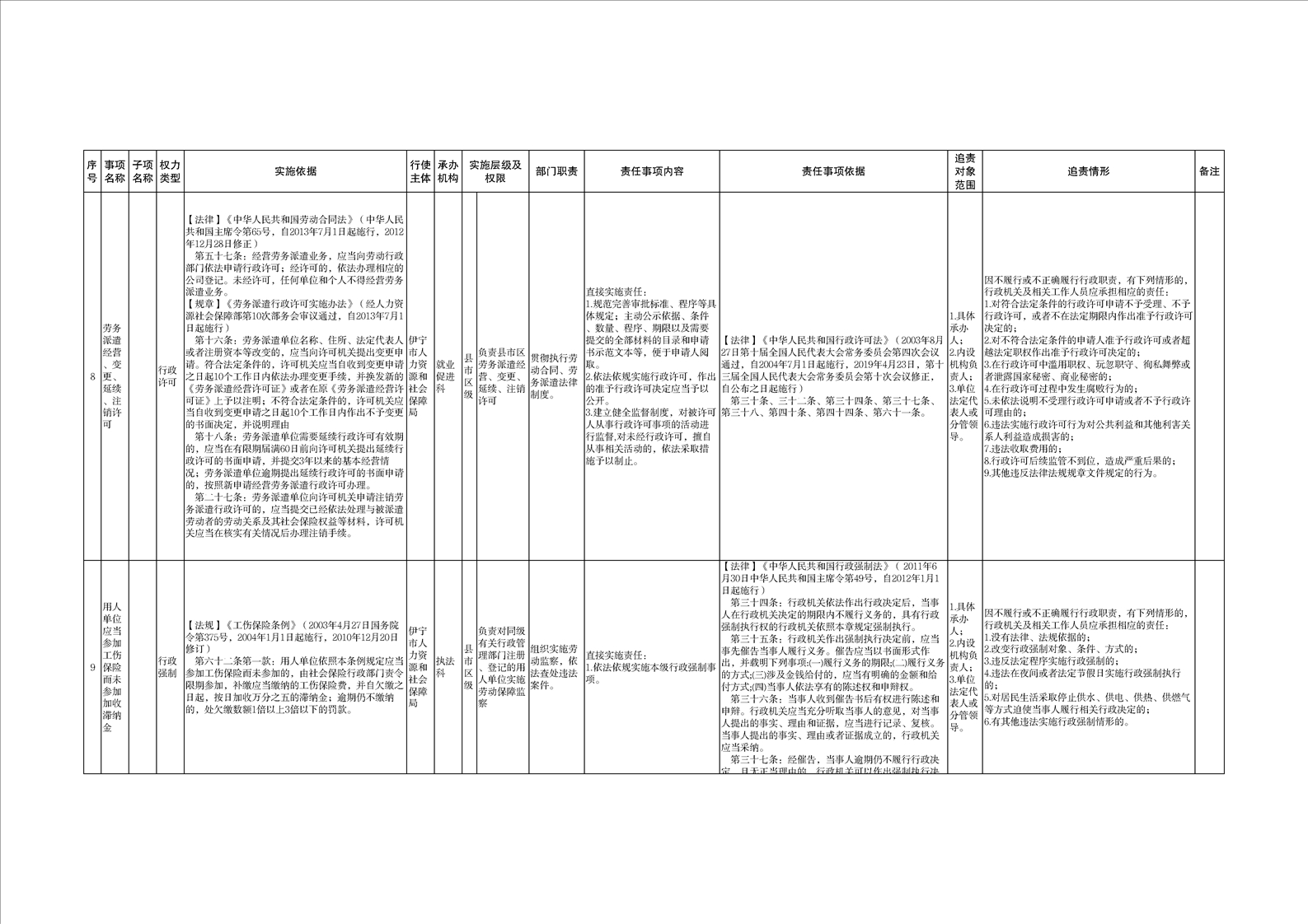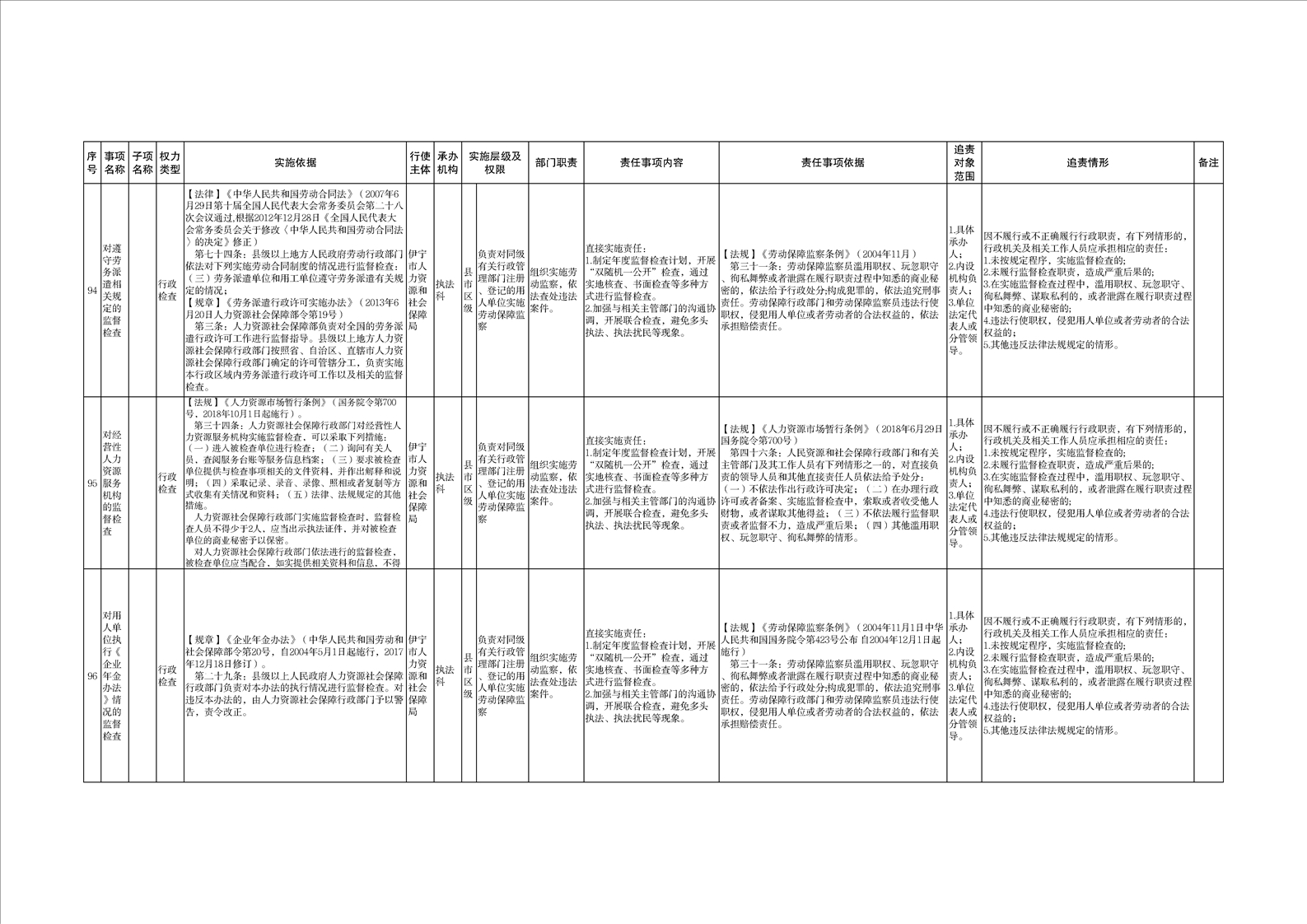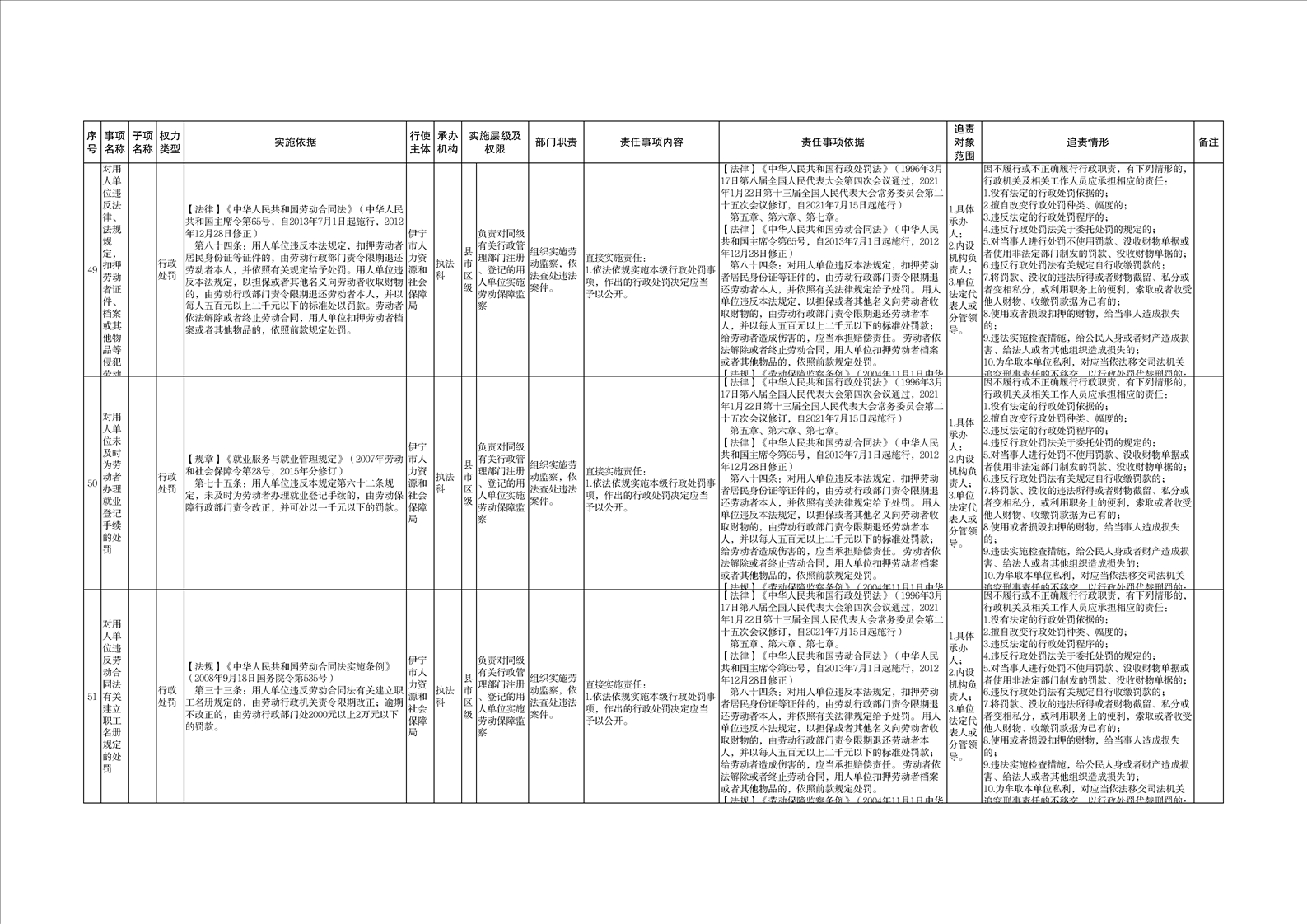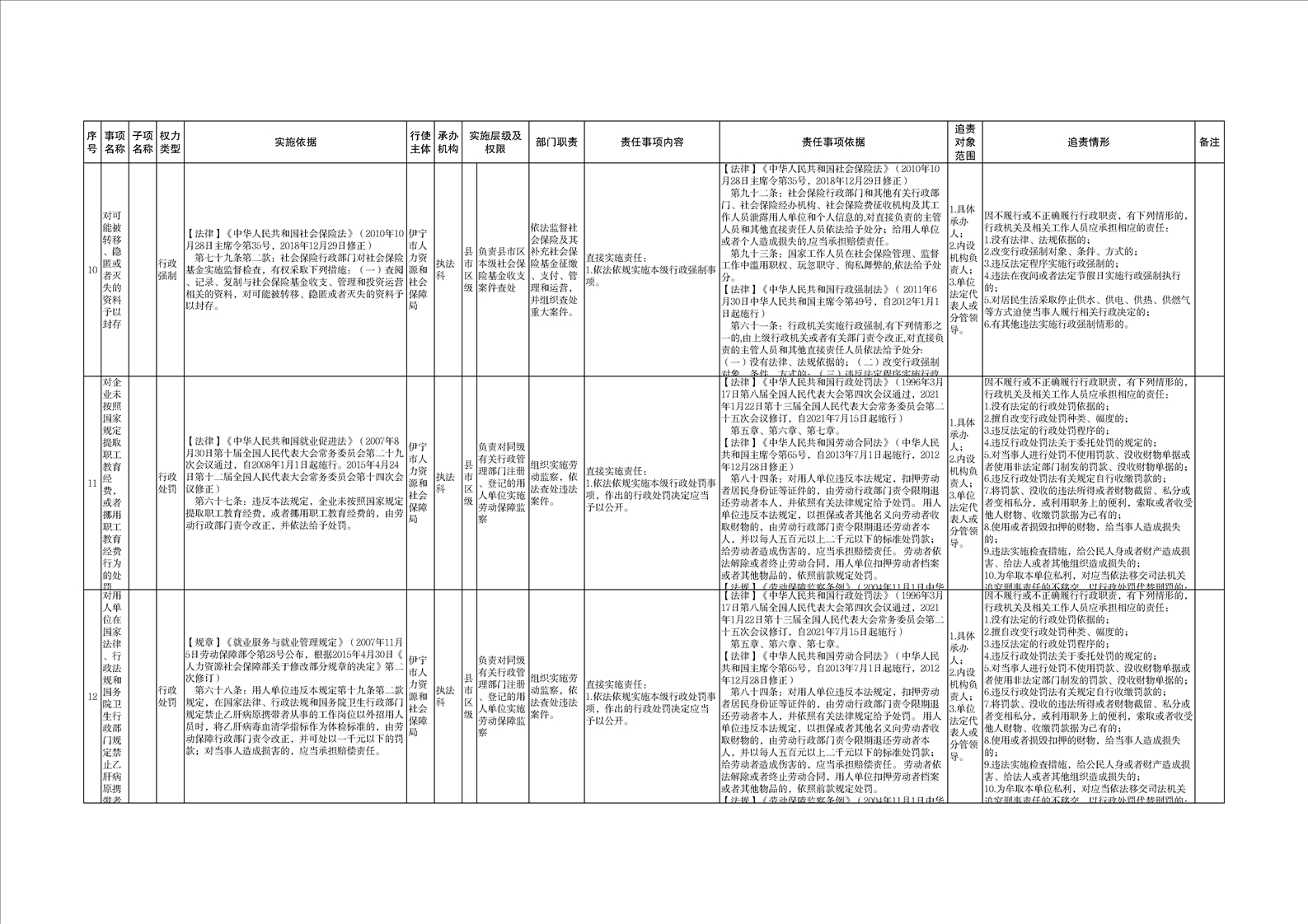 伊宁市人力资源和社会保障局权责清单