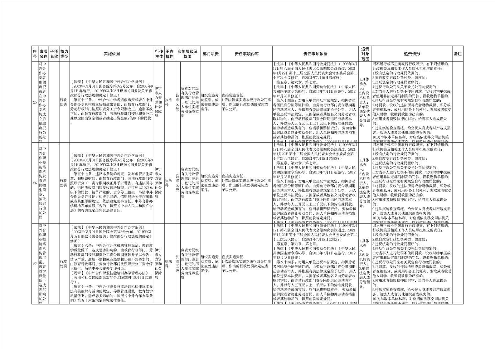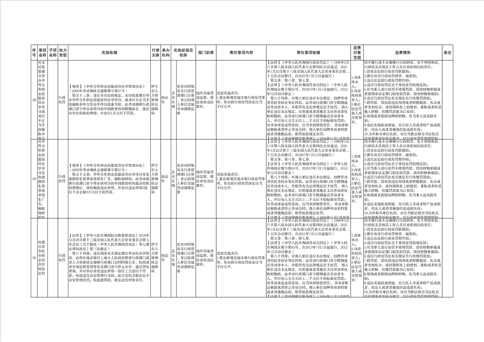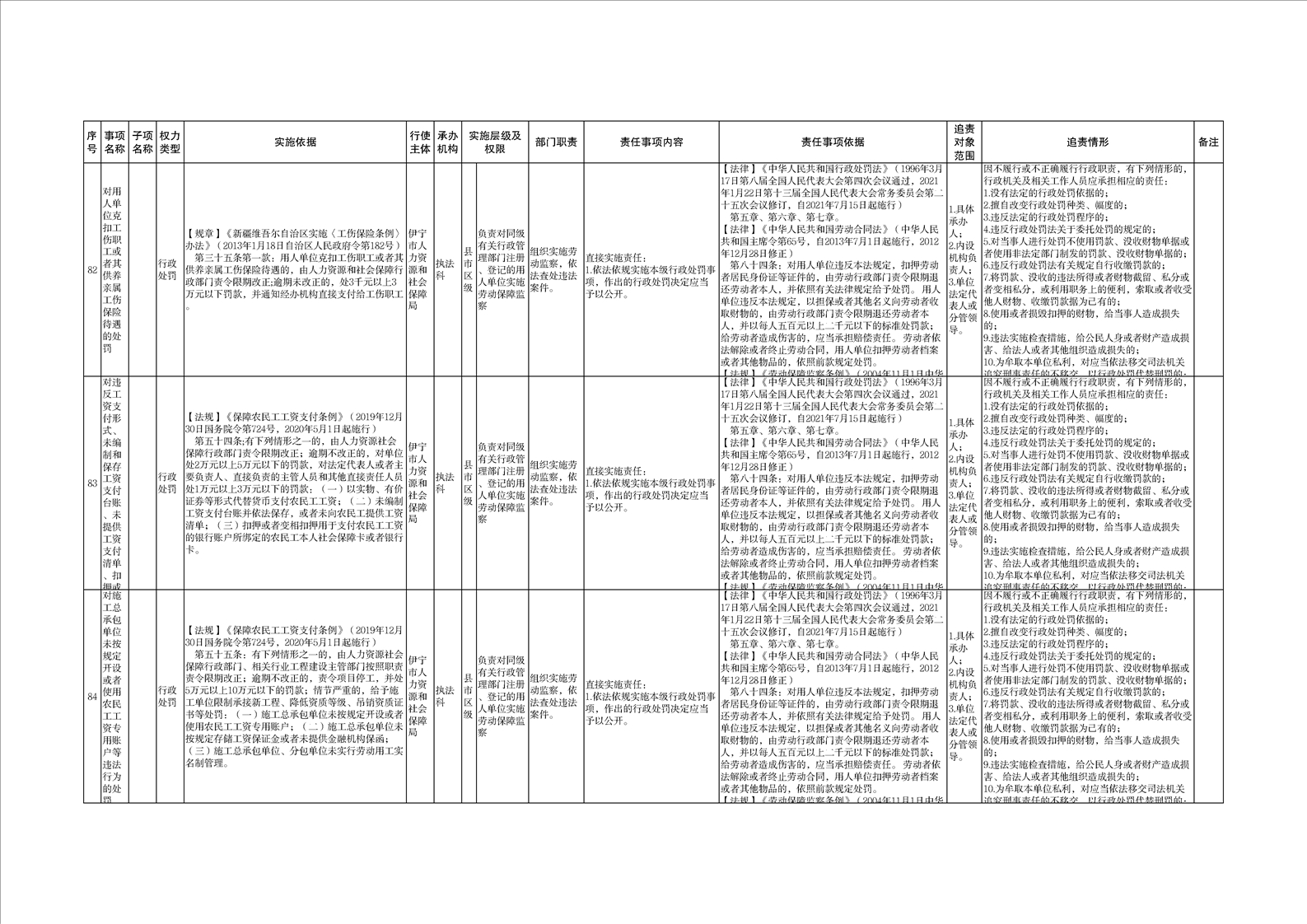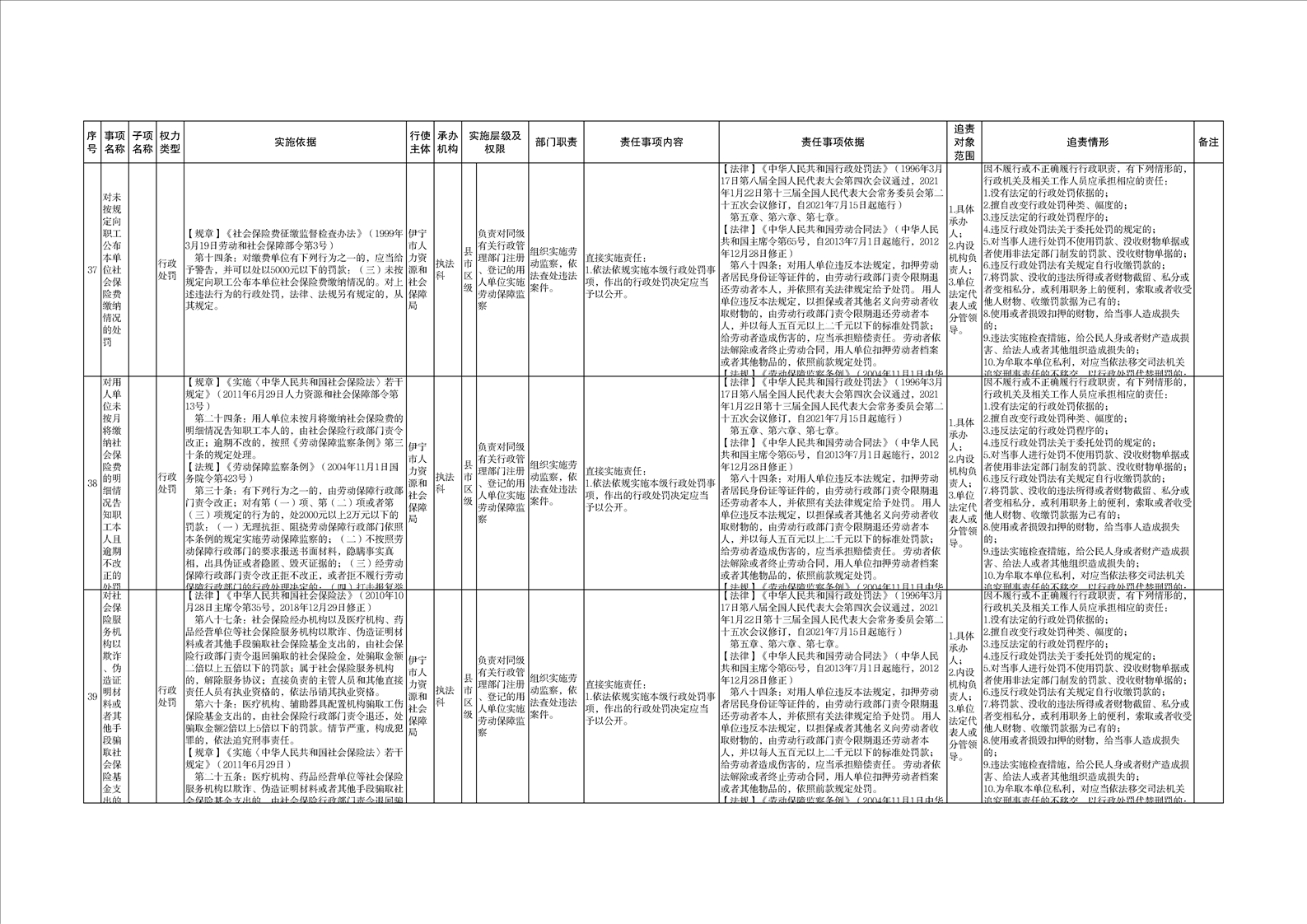 伊宁市人力资源和社会保障局权责清单