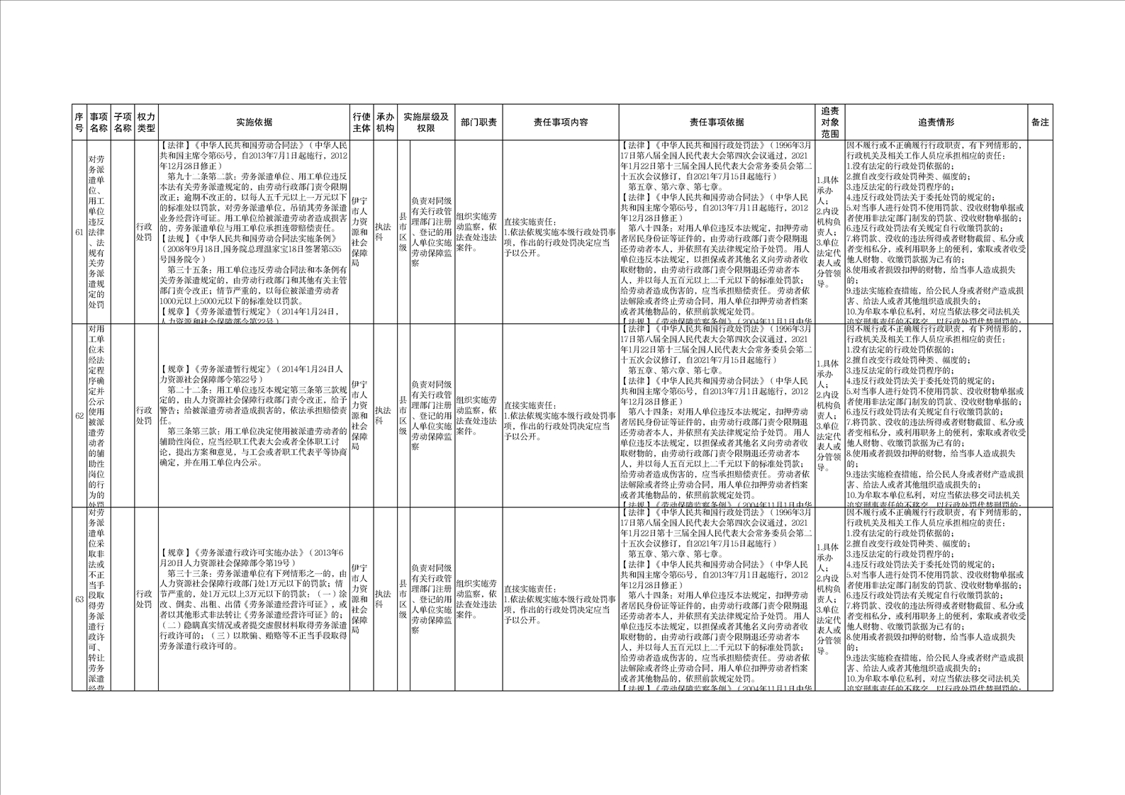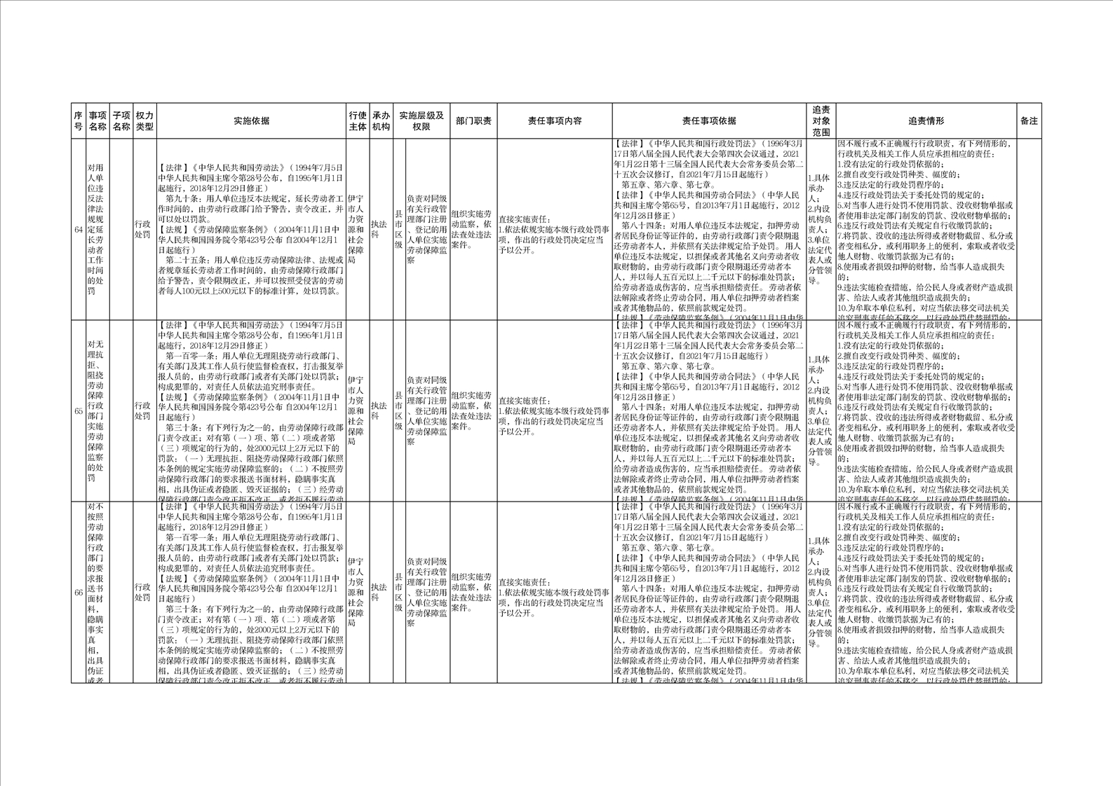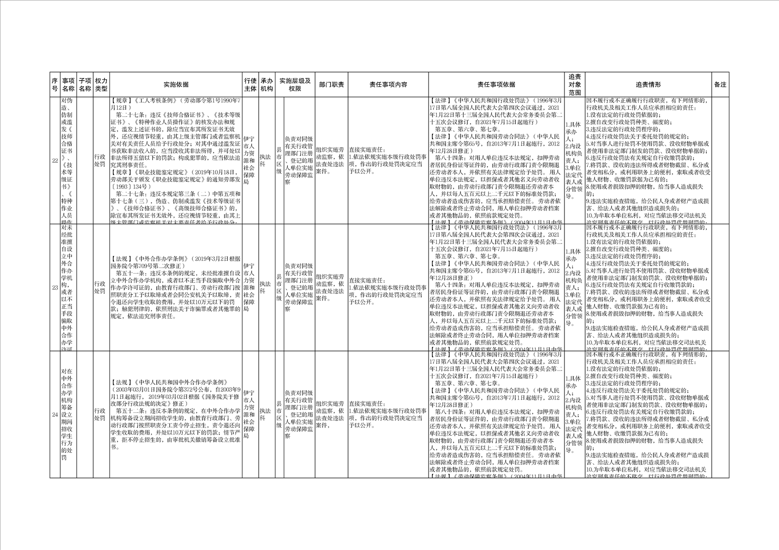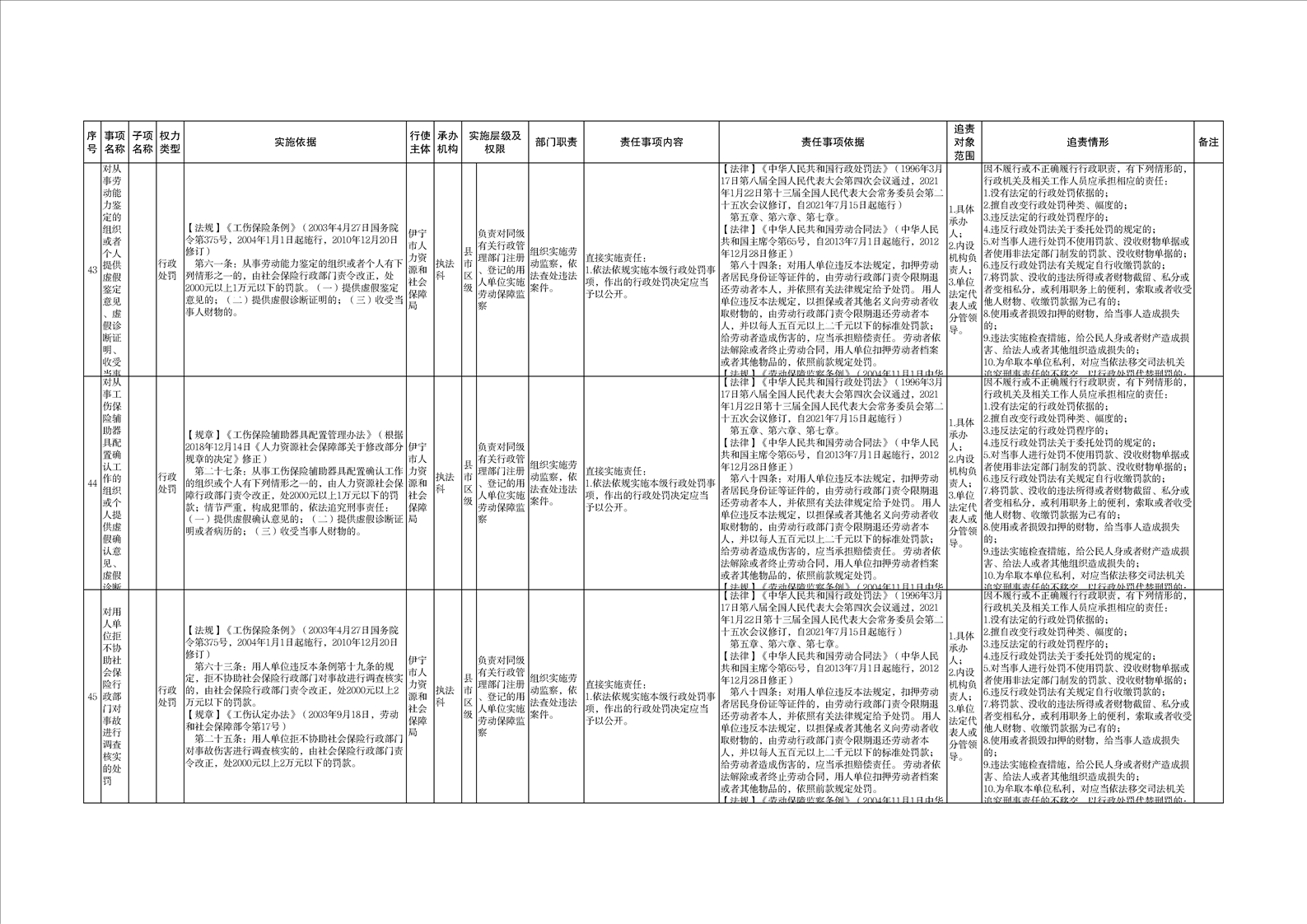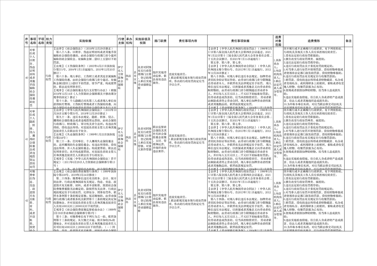 伊宁市人力资源和社会保障局权责清单