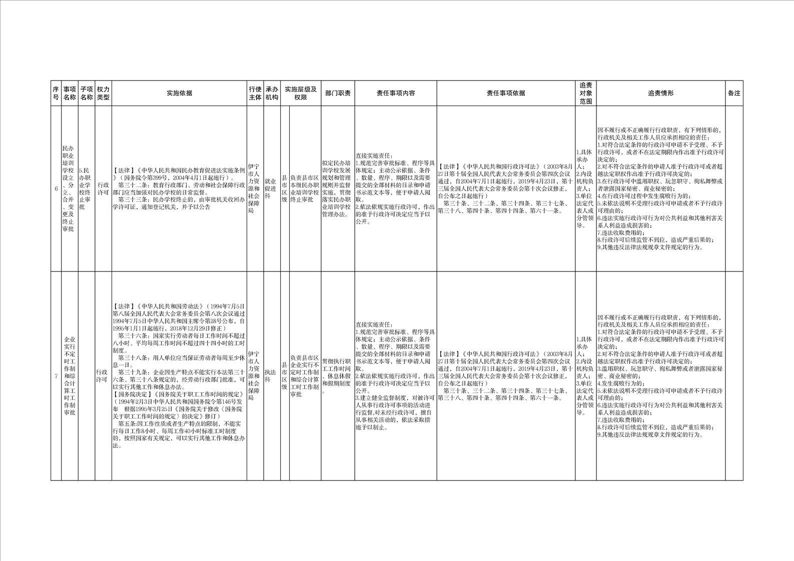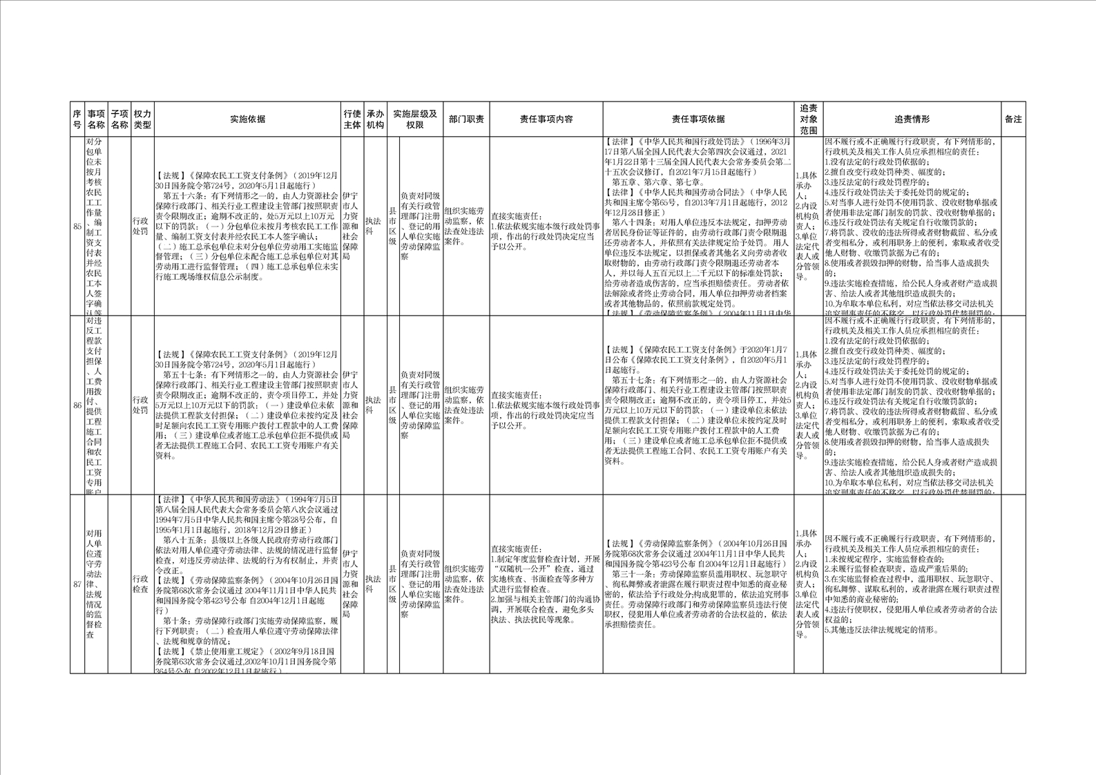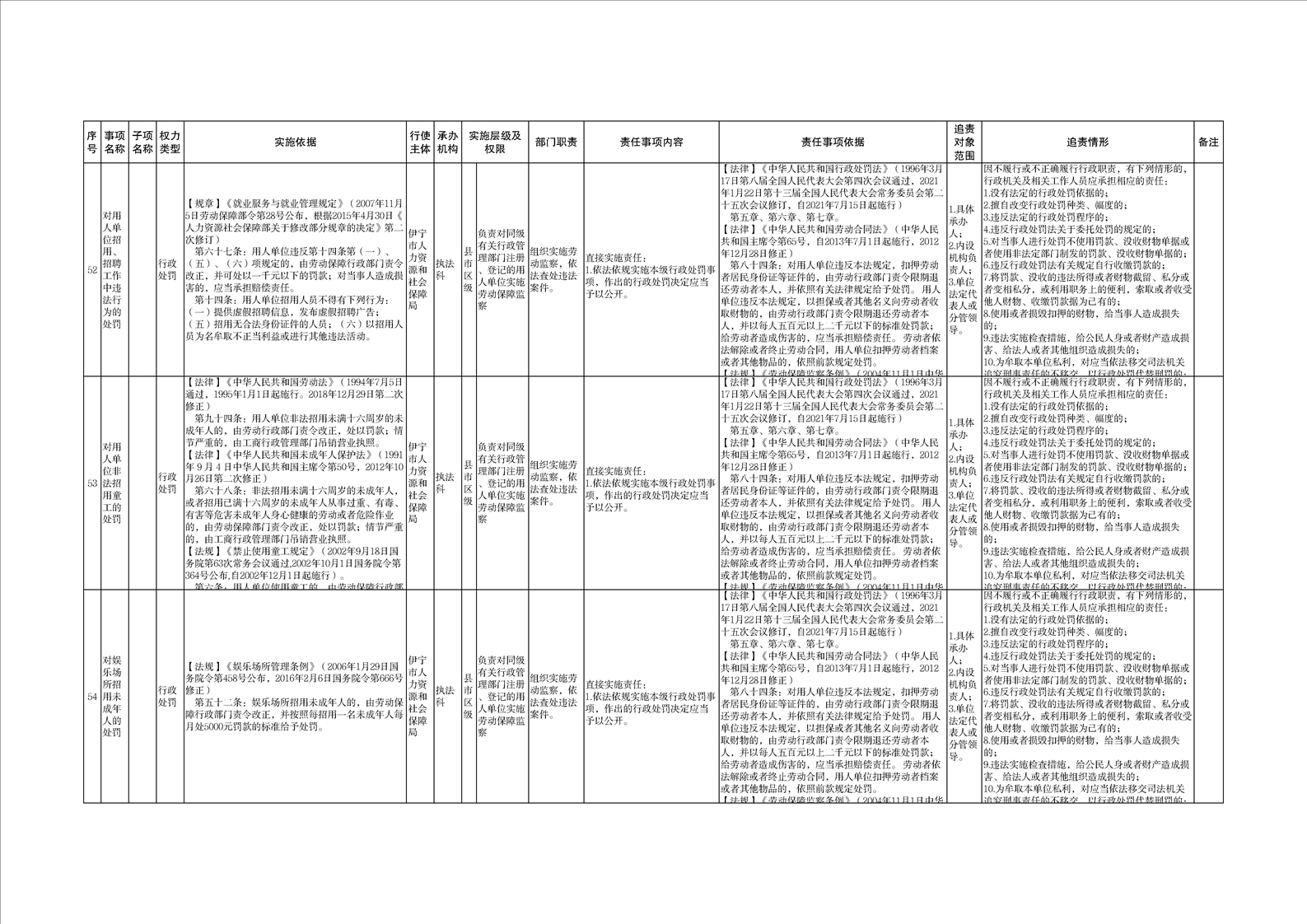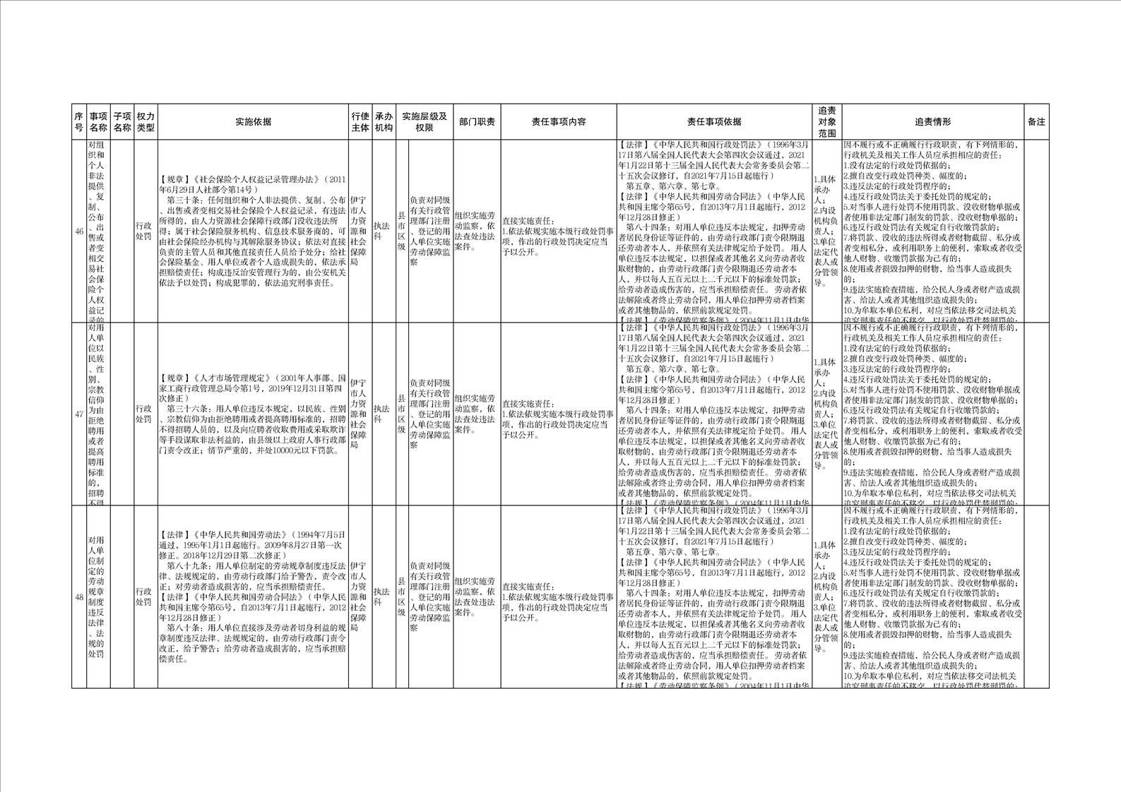 伊宁市人力资源和社会保障局权责清单