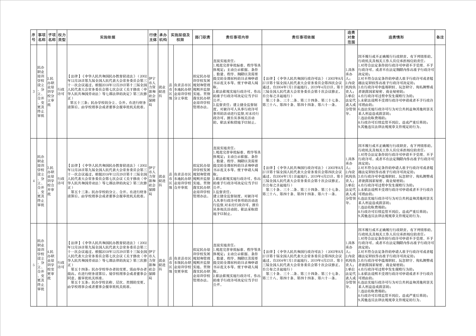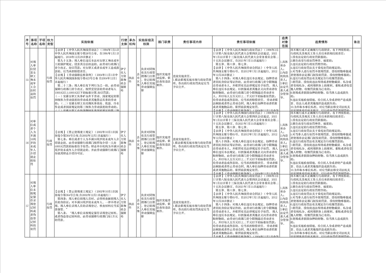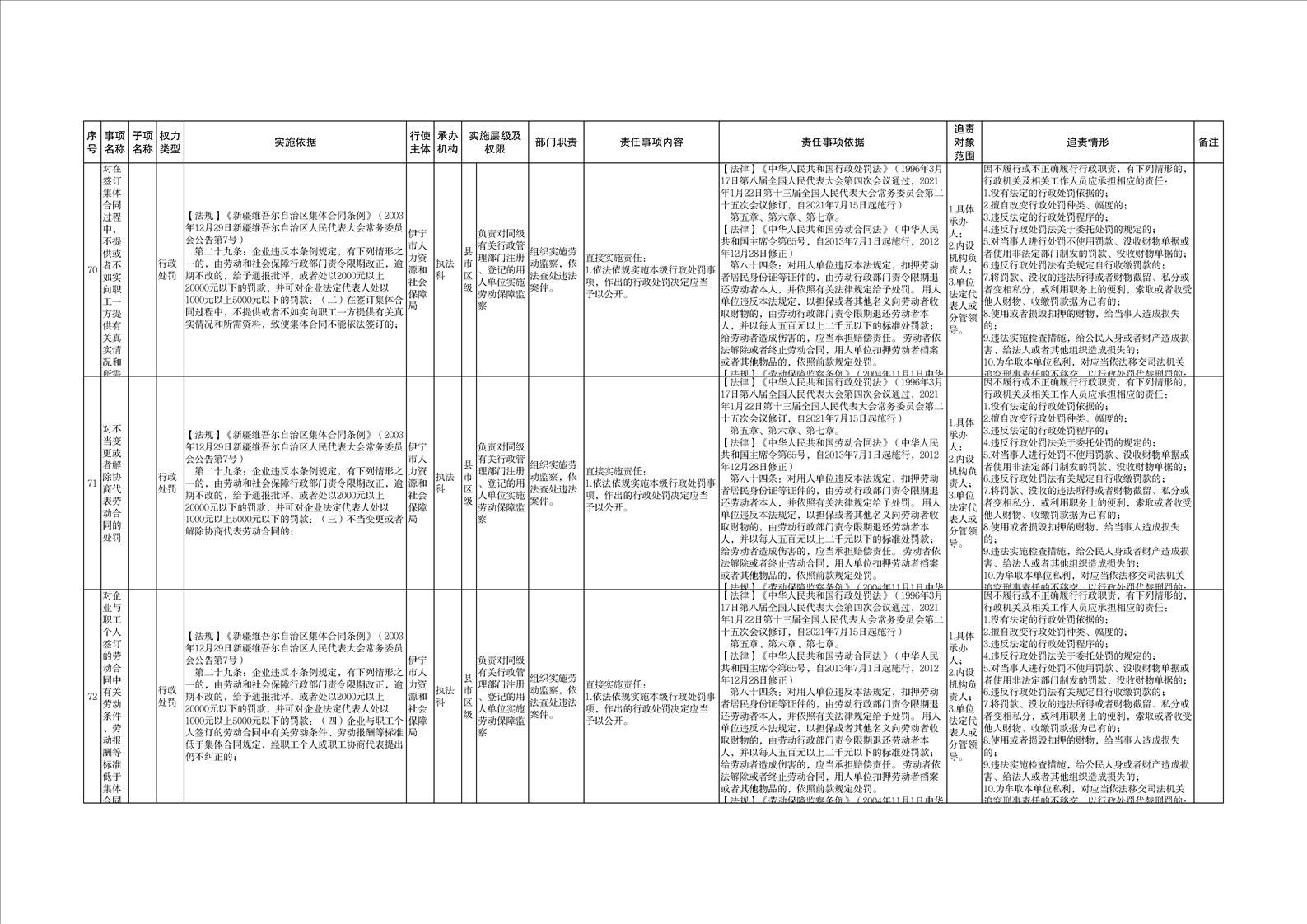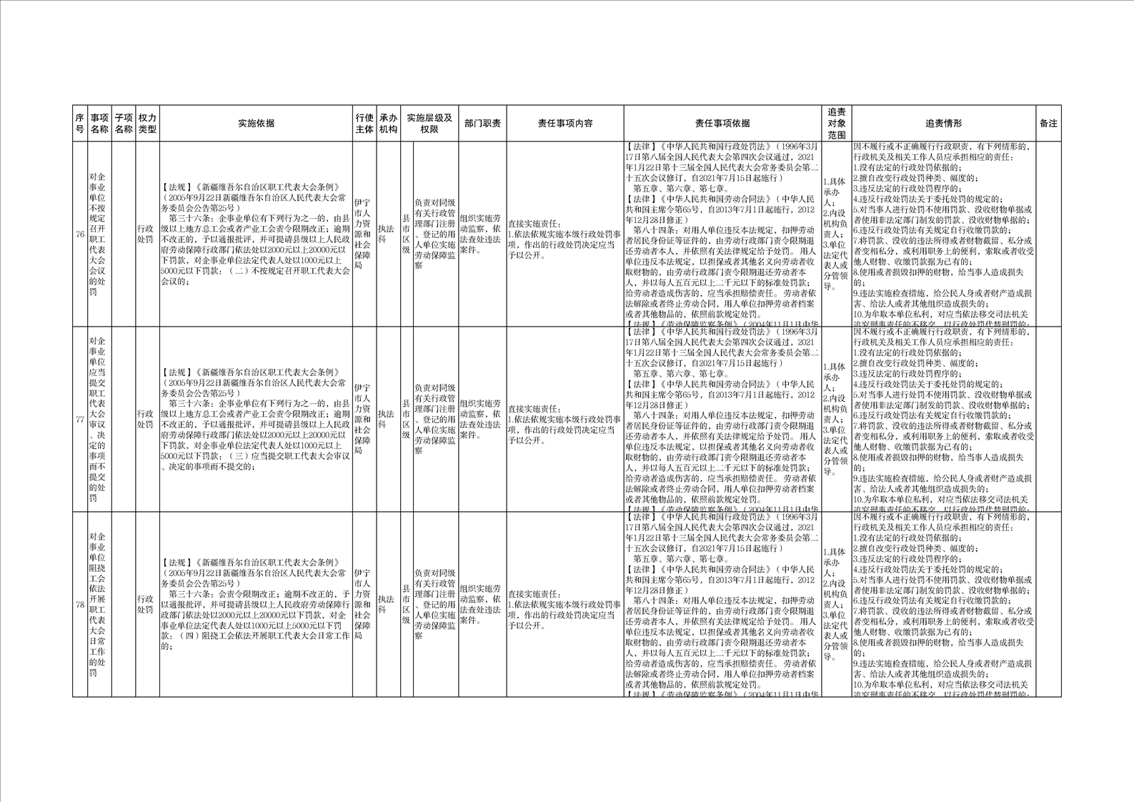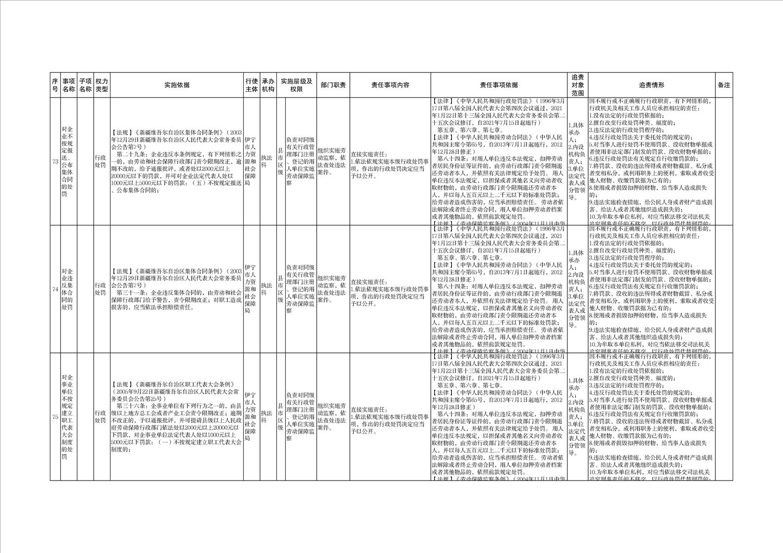 伊宁市人力资源和社会保障局权责清单