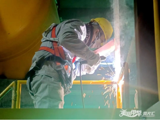 当日,中煤伊犁热电厂(2㗰MW)再生水深度处理工程建设现场一派火热,焊机轰鸣作响,30余名建设者各司其职,有条不紊地开展管道铺设、电器安装及防火施工,用实干勾勒出开局之年的奋进图景。